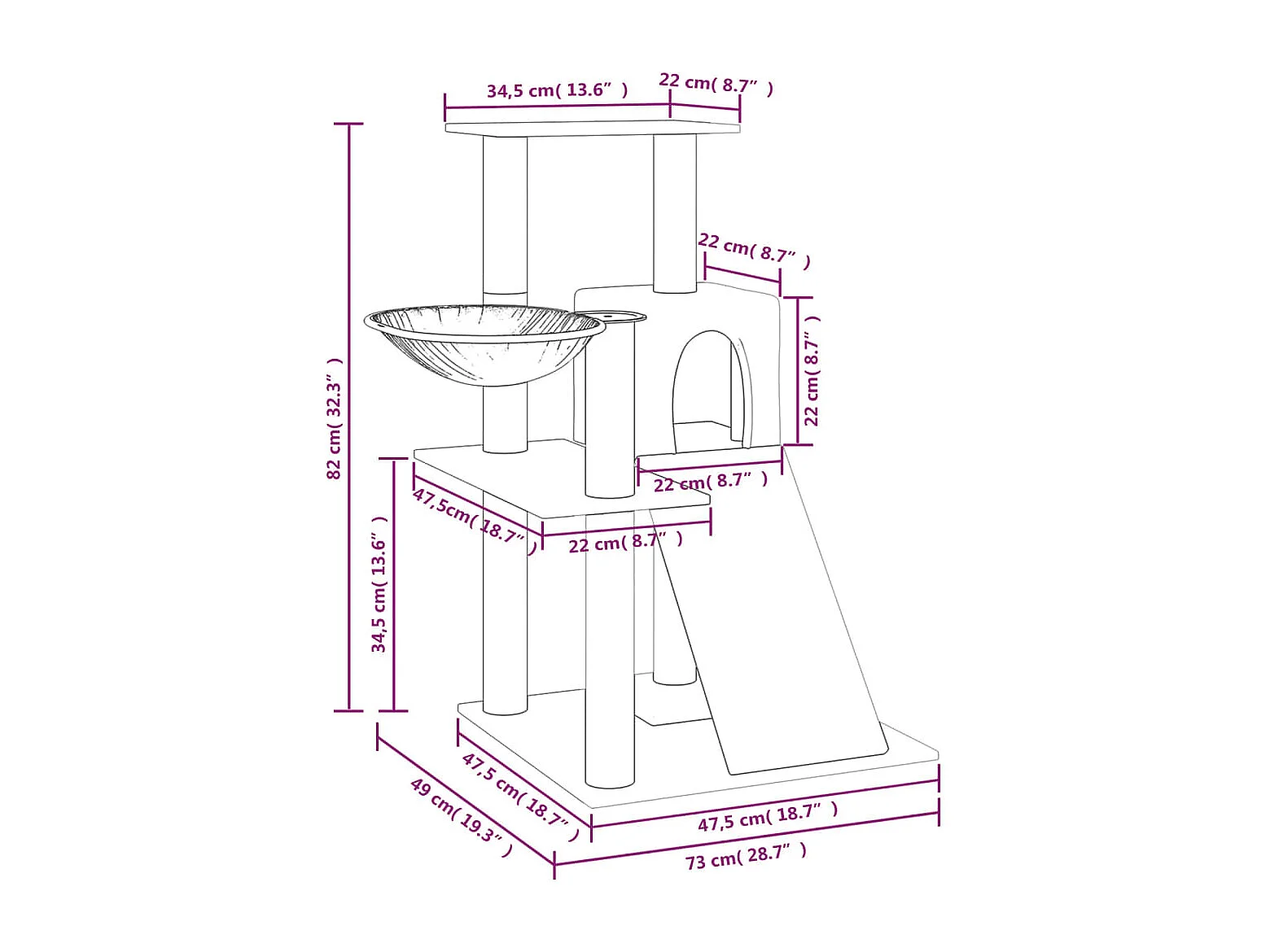 Arbre à chat avec griffoirs en sisal Gris foncé 82 cm