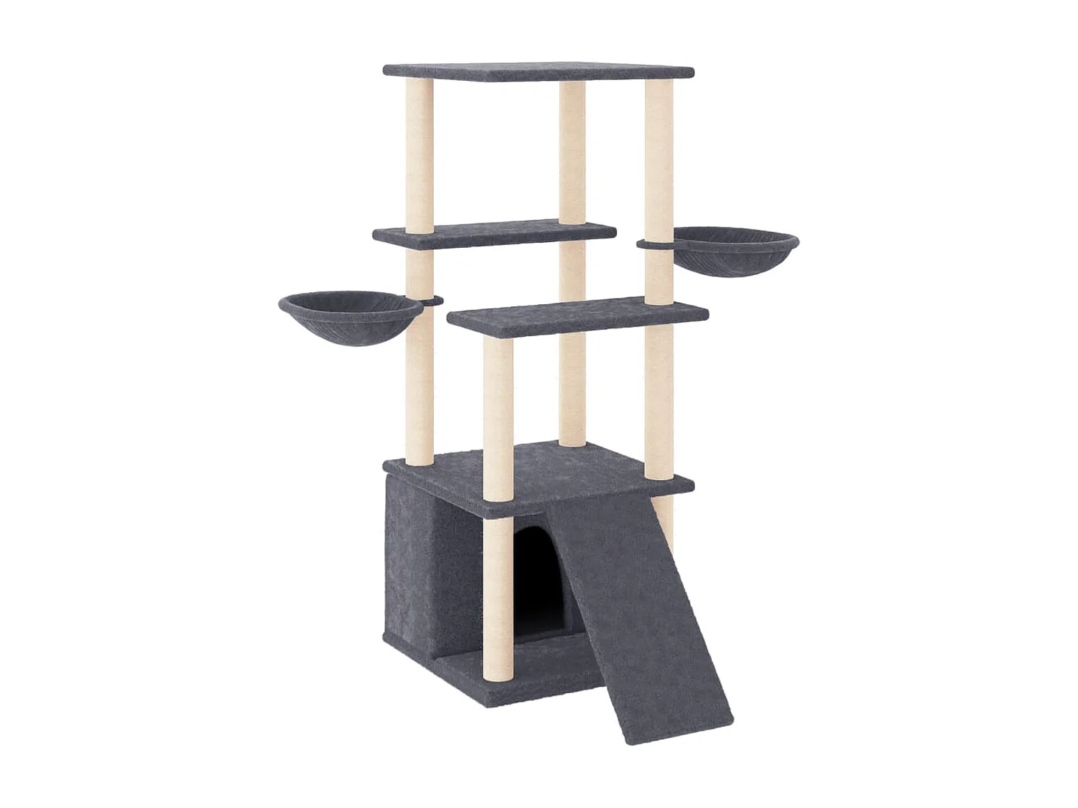 Arbre à chat avec griffoirs en sisal gris foncé 132 cm