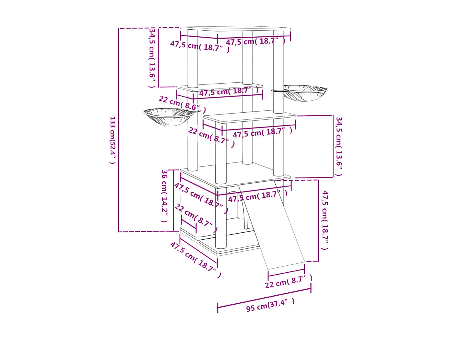 Arbre à chat avec griffoirs en sisal gris foncé 85,5 cm