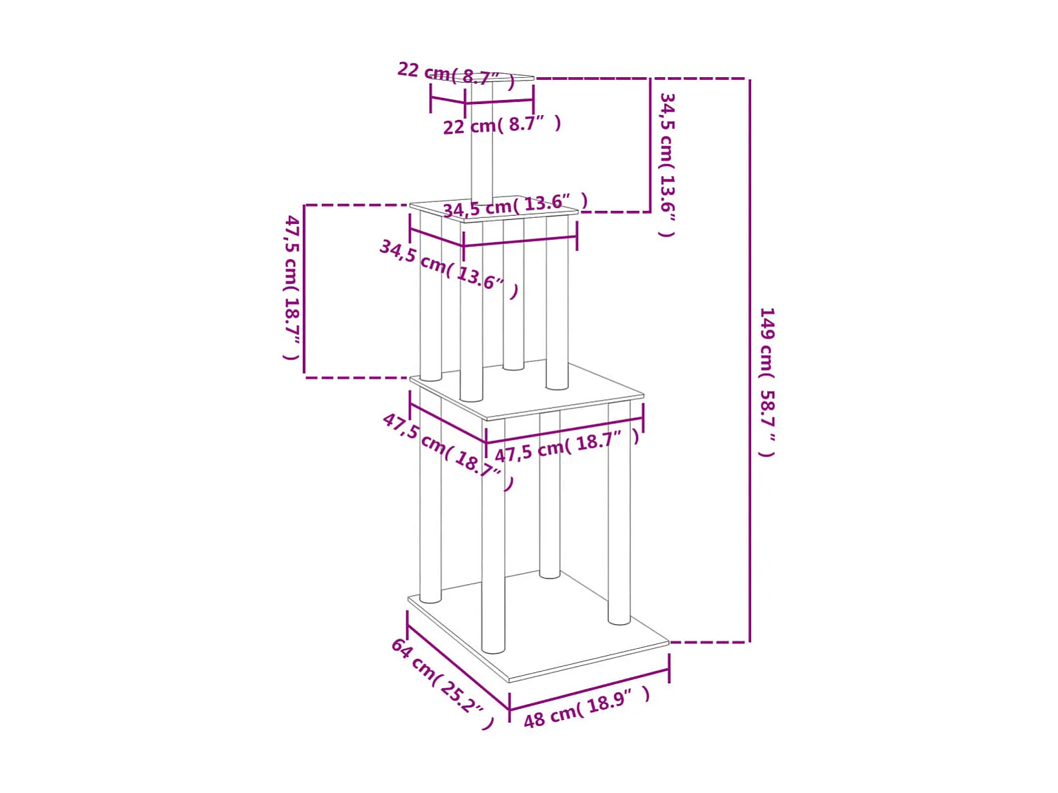 Arbre à chat avec griffoirs en sisal gris foncé 149 cm