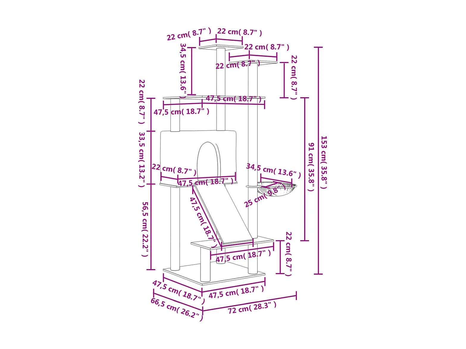Arbre à chat avec griffoirs en sisal Gris foncé 153 cm