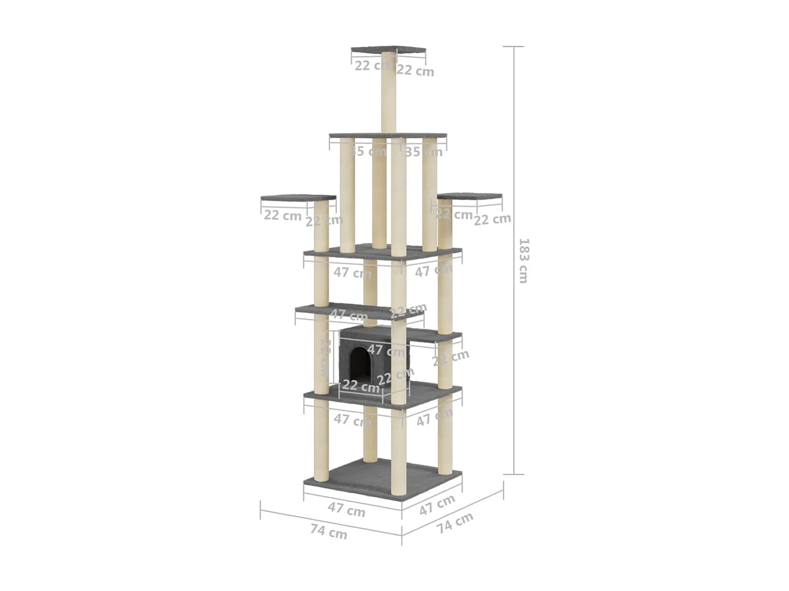 Arbre à chat avec griffoirs en sisal Gris foncé 183 cm