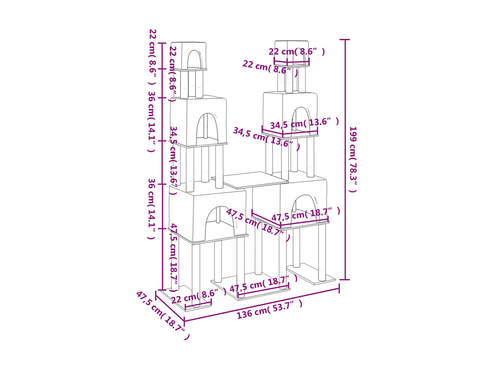 Arbre à chat avec griffoirs en sisal Gris foncé 199 cm