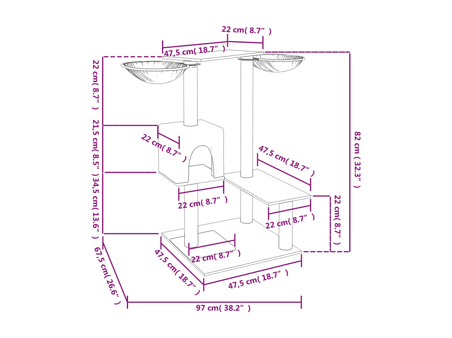 Arbre à chat avec griffoirs gris foncé 82 cm