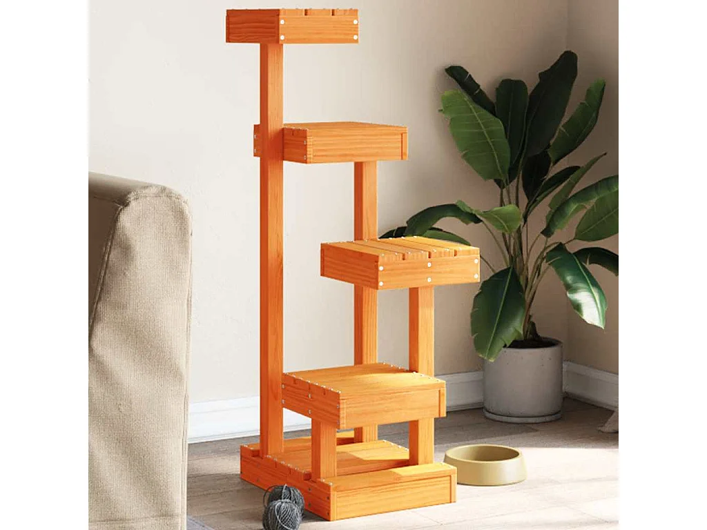 Arbre à chat cire marron 45,5x49x103 cm bois de pin massif