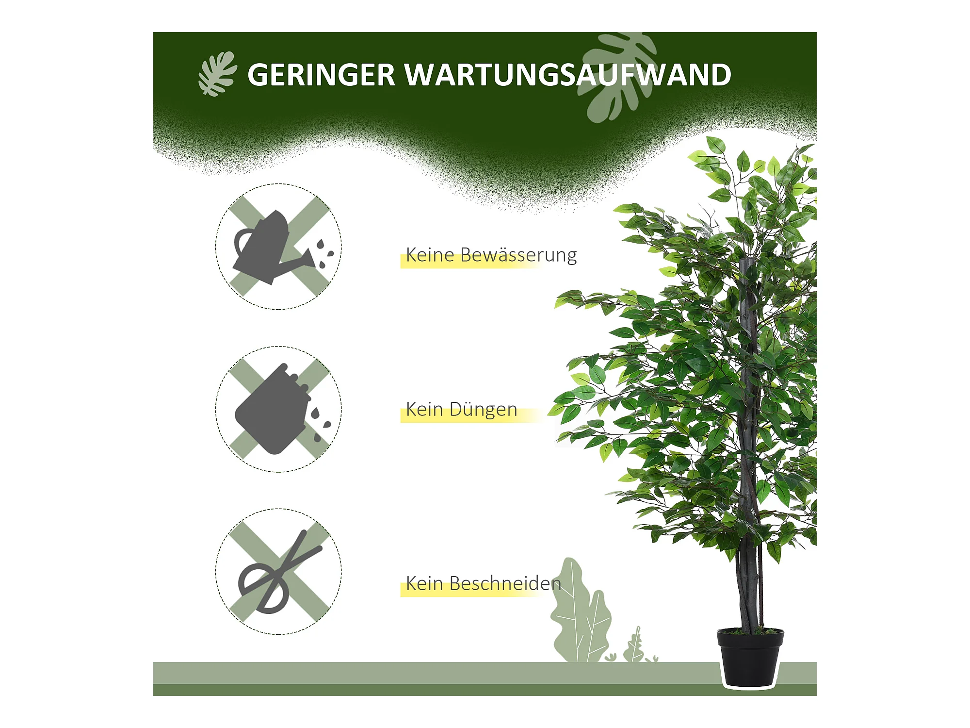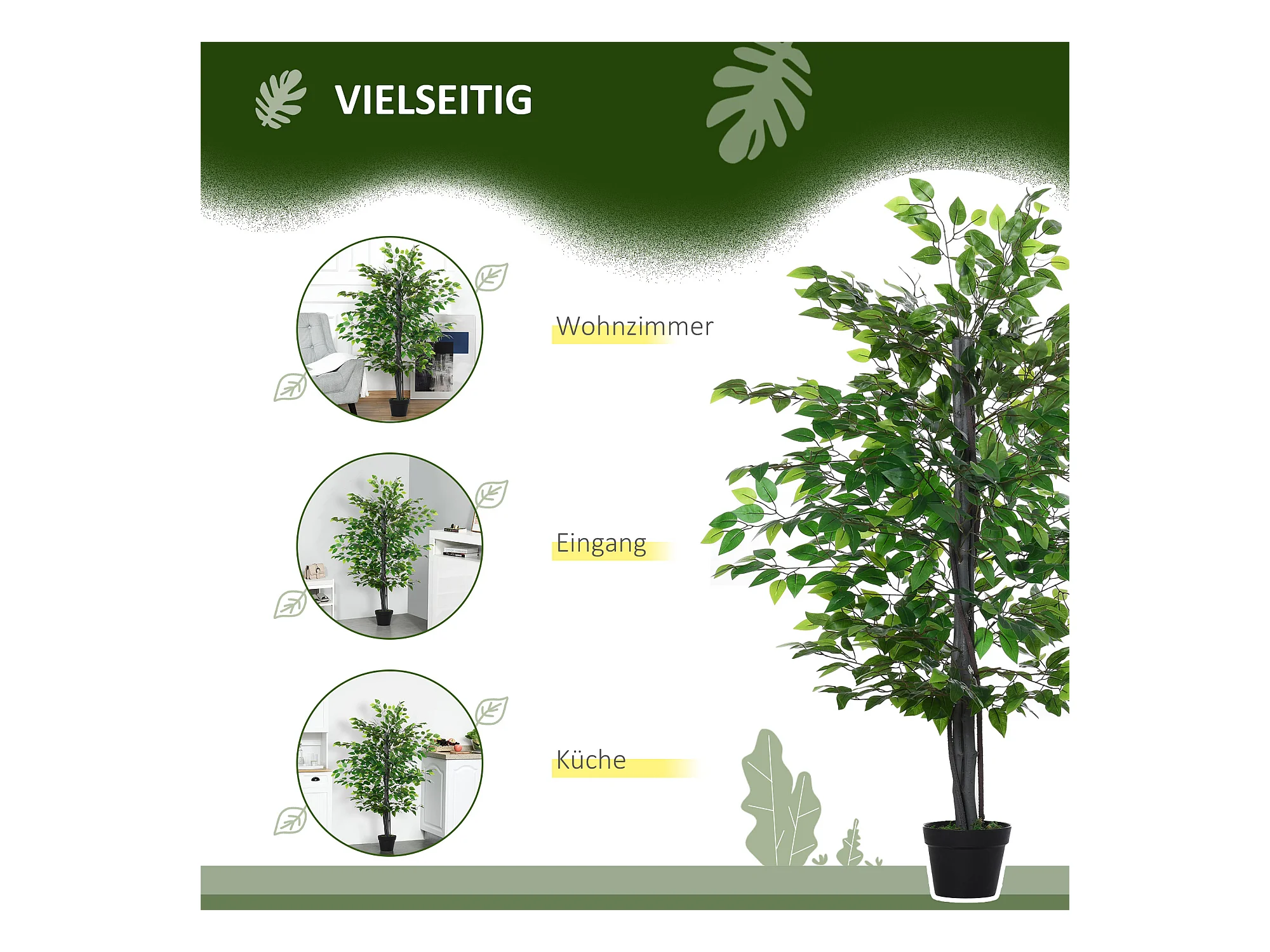 Ficus artificiel décoratif, pot plastique cimenté, vert naturel (17x17x150cm)