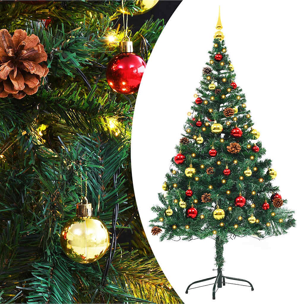 Arbre de Noël artificiel pré-éclairé avec boules vert 150 cm