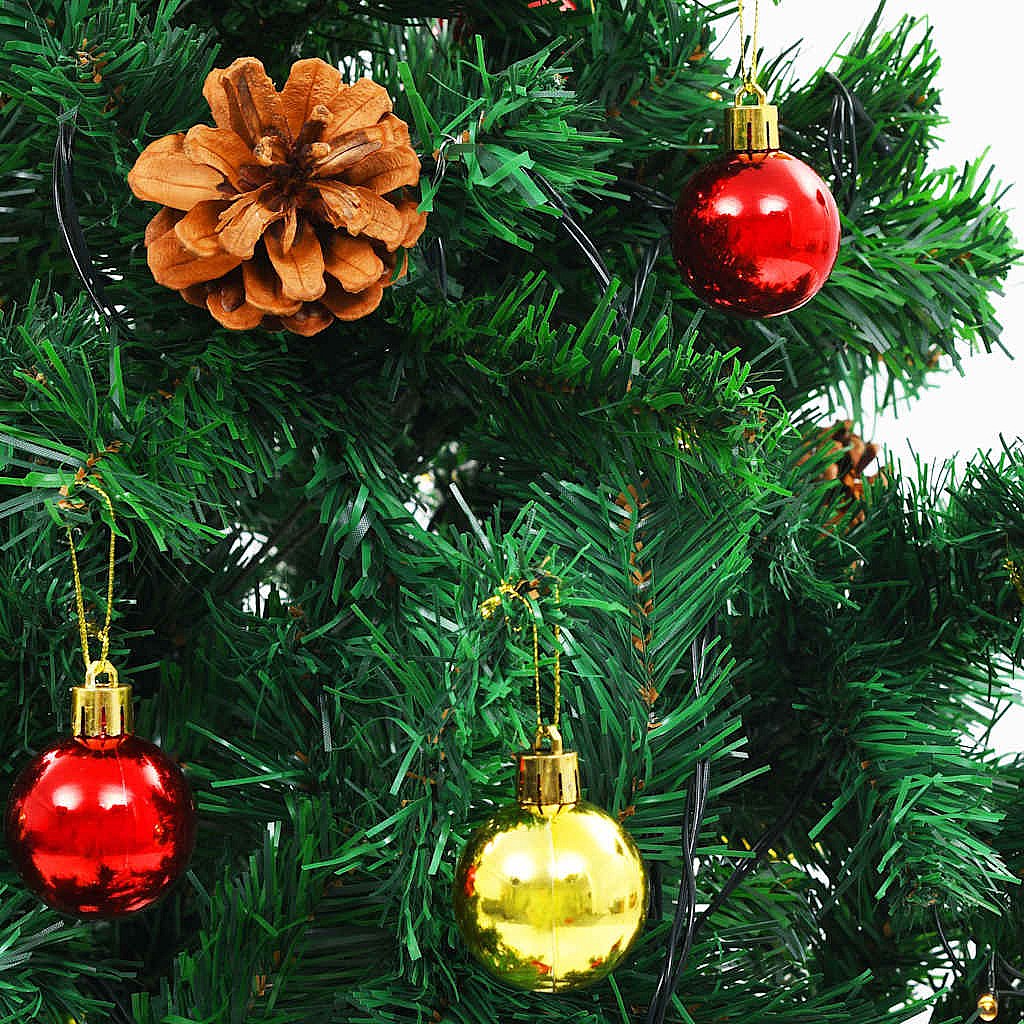 Arbre de Noël artificiel pré-éclairé et boules 150 cm Vert