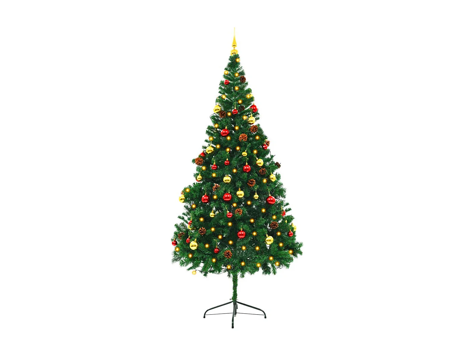 Demi-arbre de Noël artificiel pré-éclairé et boules vert 210 cm