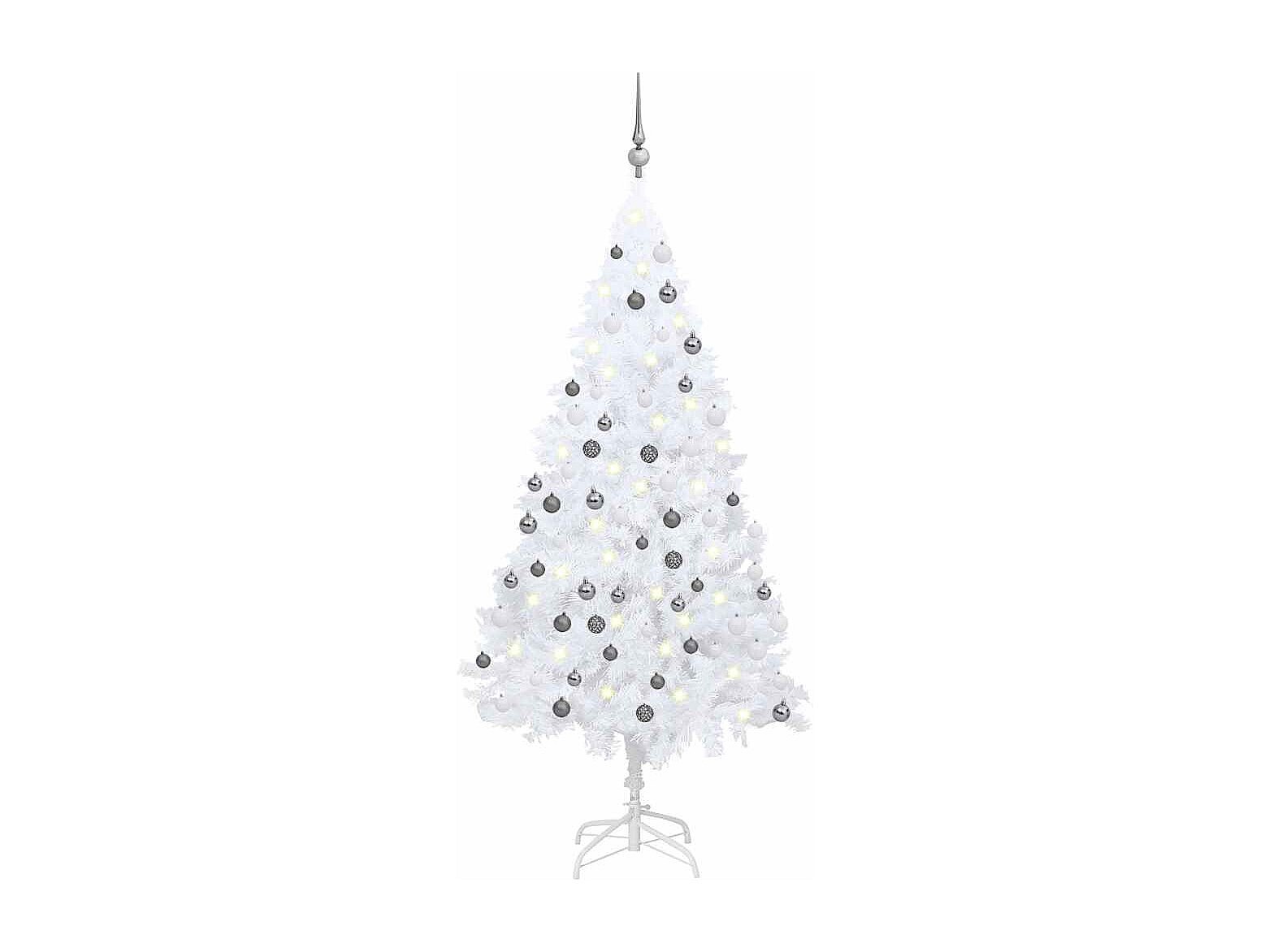 Arbre de Noël artificiel pré-éclairé et boules blanc 120 cm PVC