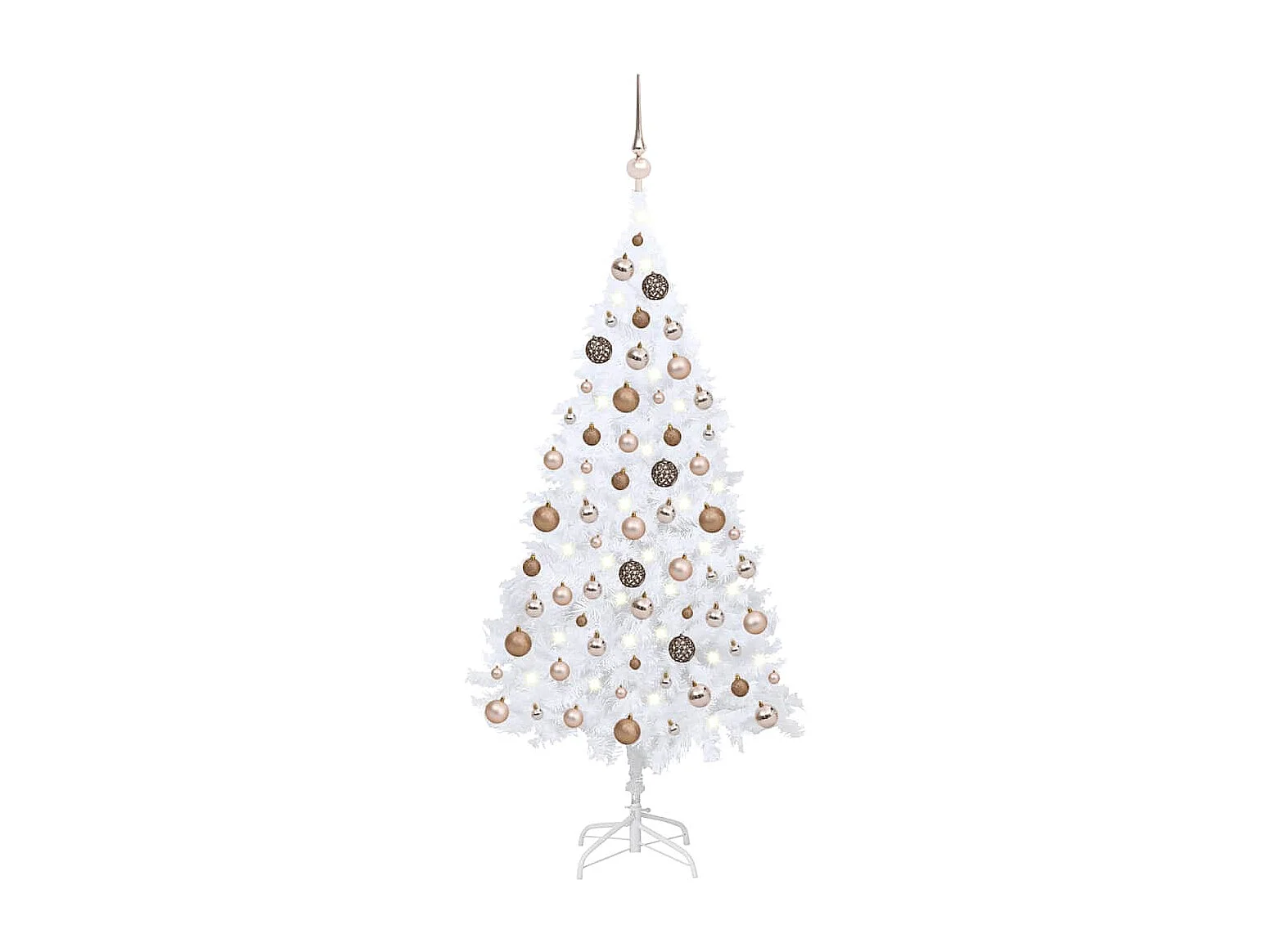 Demi-arbre de Noël artificiel pré-éclairé et boules blanc 180cm