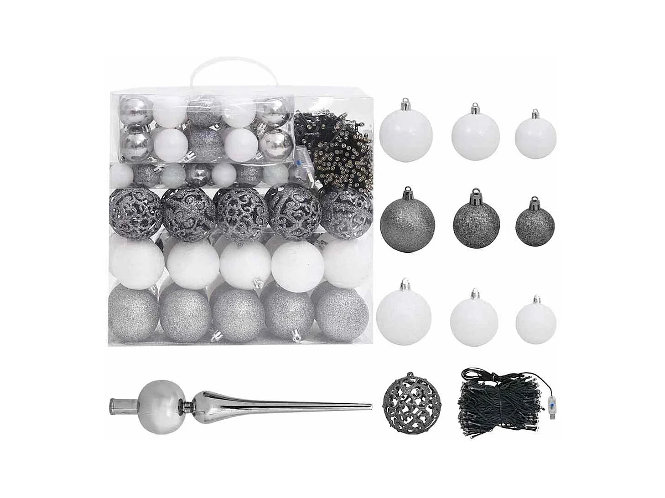 Arbre de Noël artificiel pré-éclairé avec boules blanc 210 cm