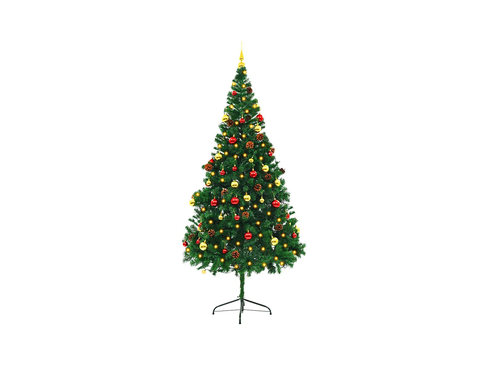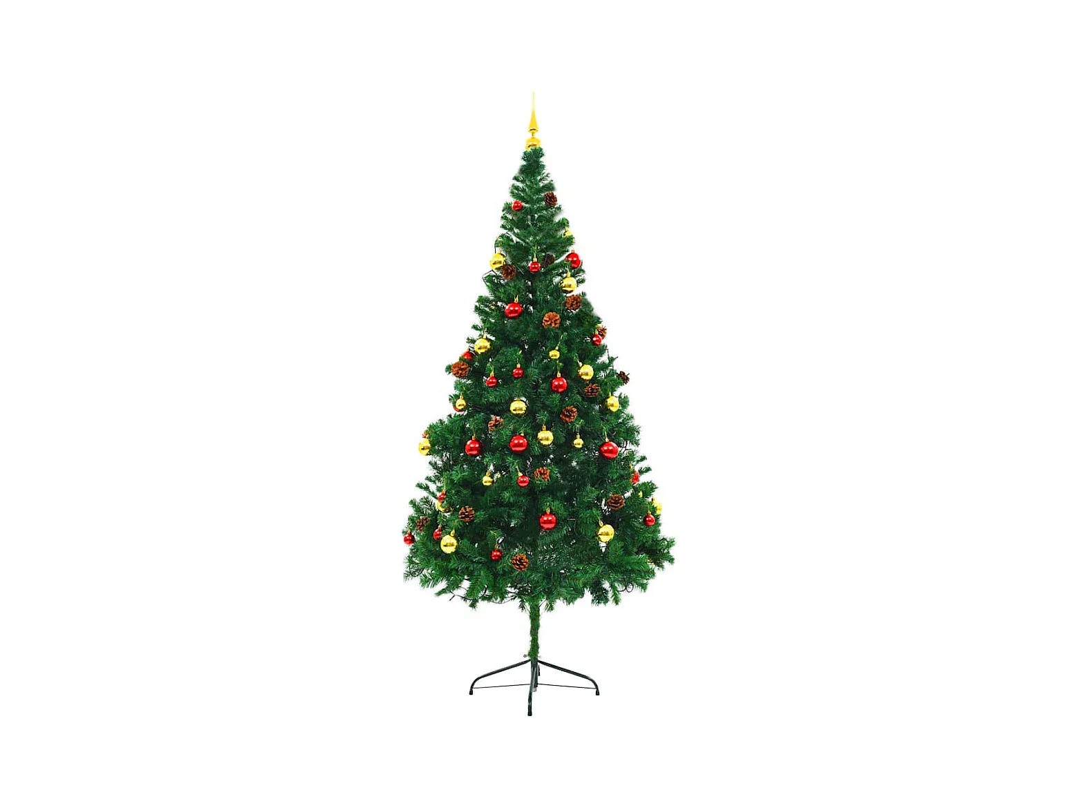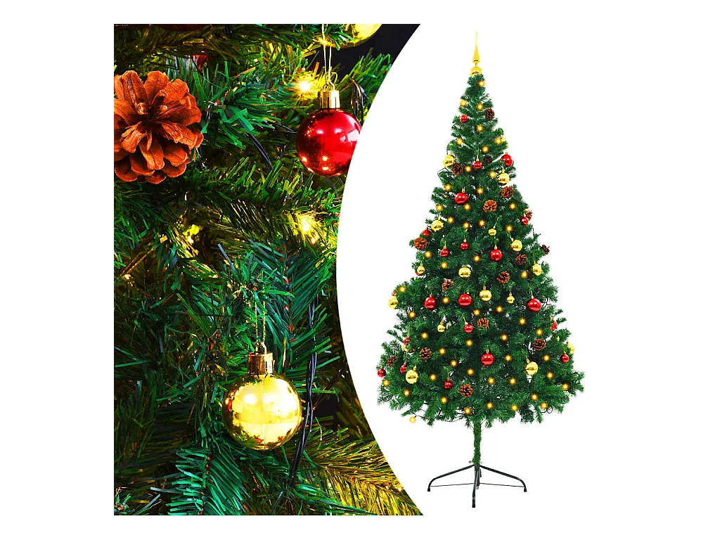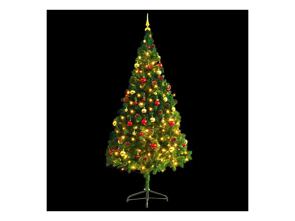 Arbre de Noël artificiel pré-éclairé avec boules vert 210 cm