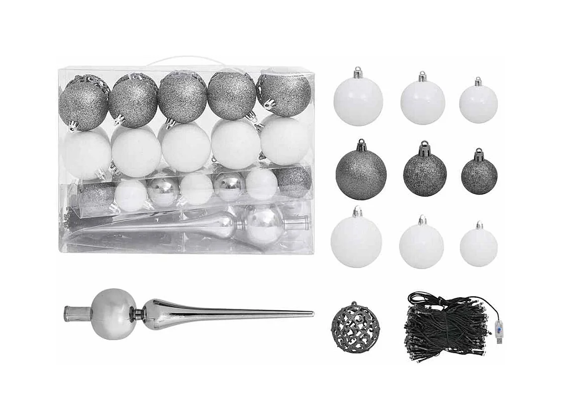 Arbre de Noël artificiel pré-éclairé et boules blanc 180 cm