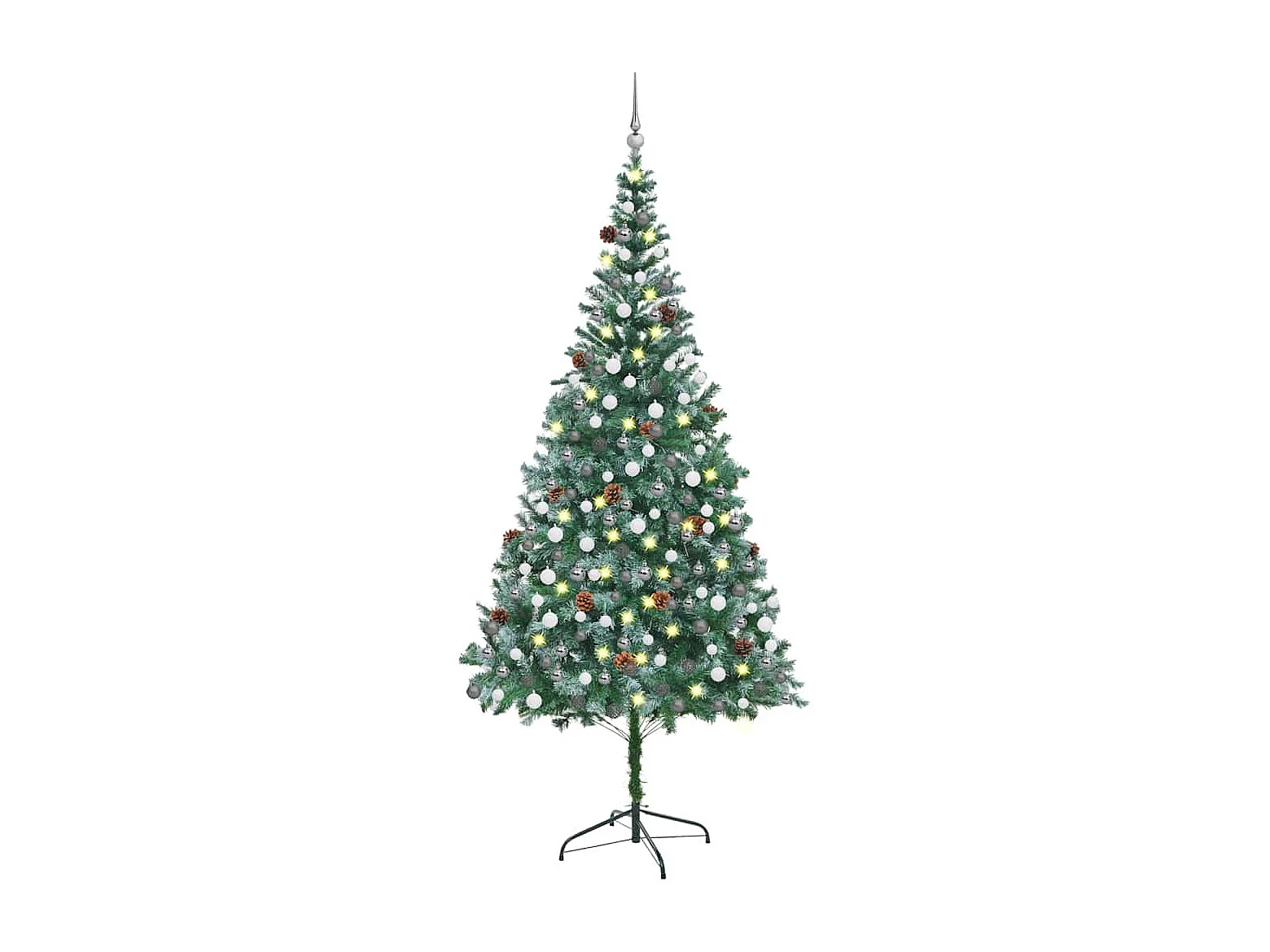 Arbre de Noël artificiel pré-éclairé/boules pommes de pin 210cm