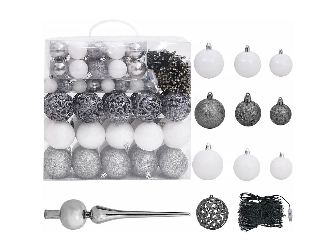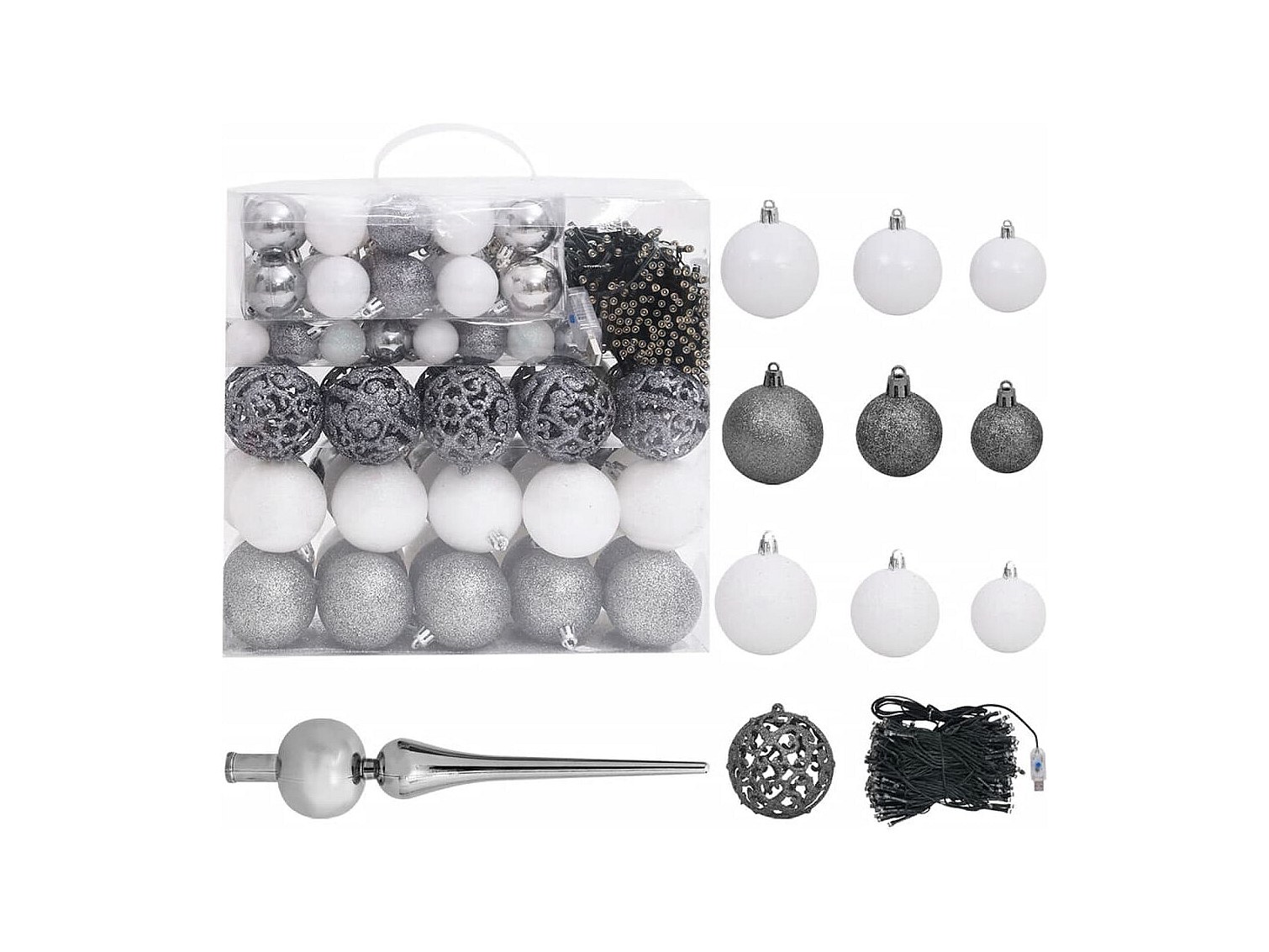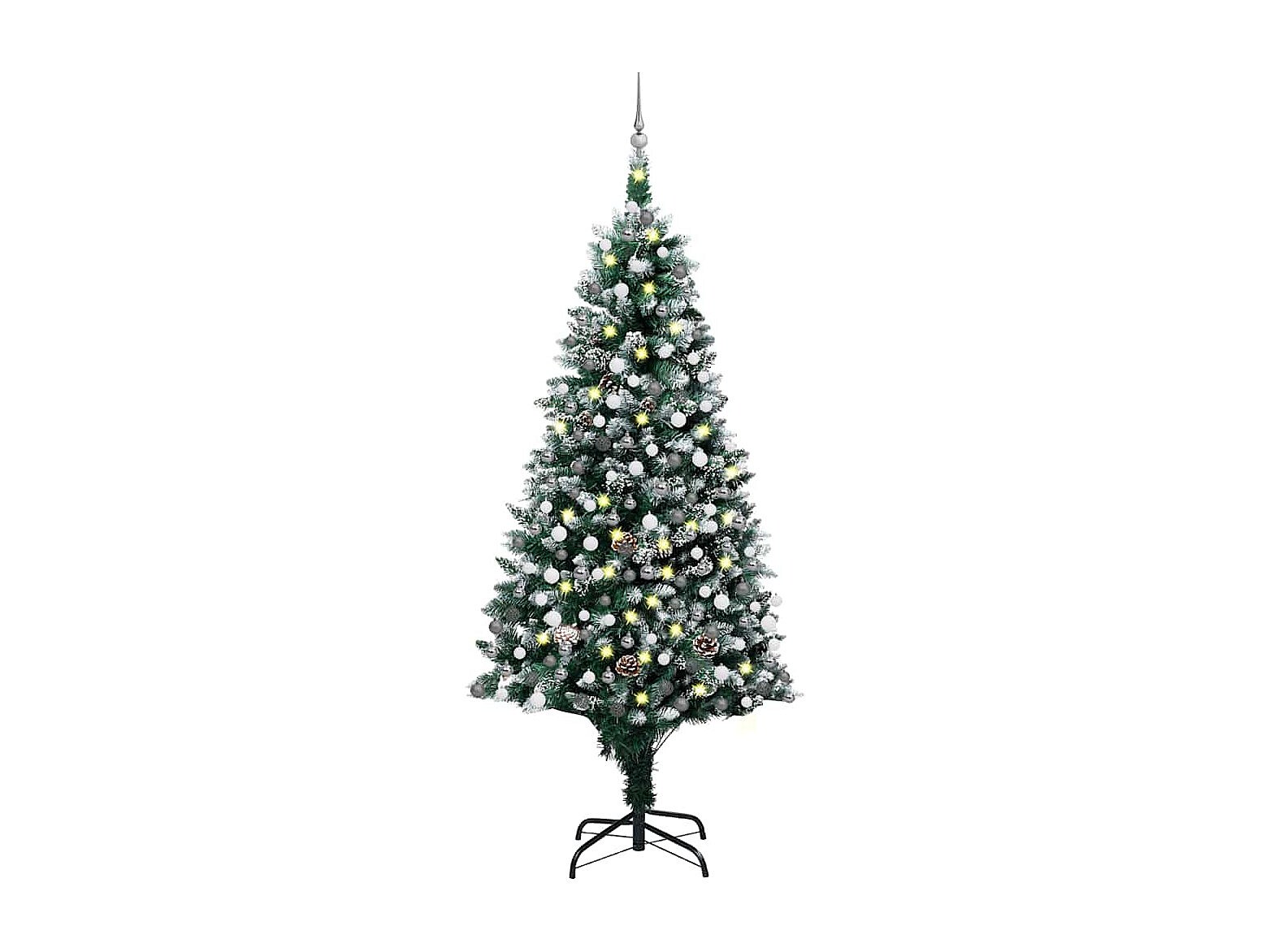 Arbre de Noël artificiel pré-éclairé/boules pommes de pin 210cm