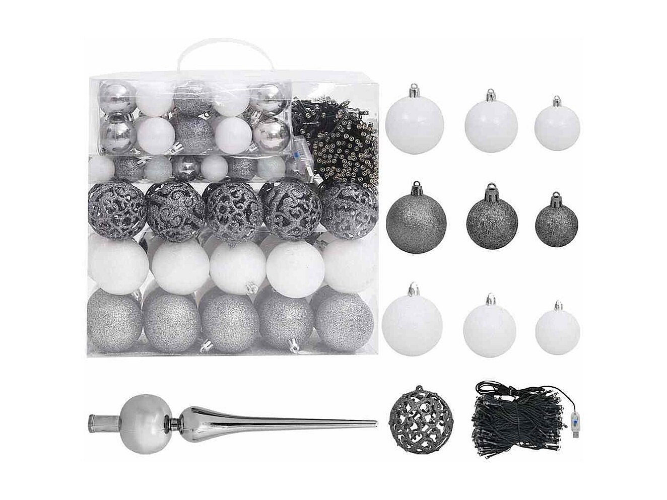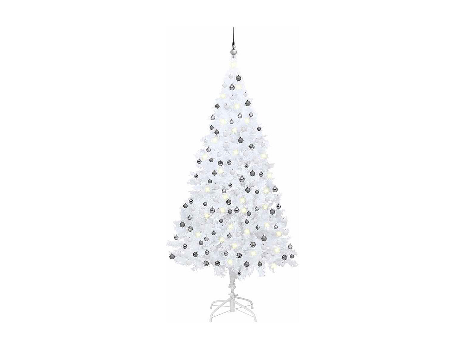 Arbre de Noël artificiel pré-éclairé et boules blanc 240 cm