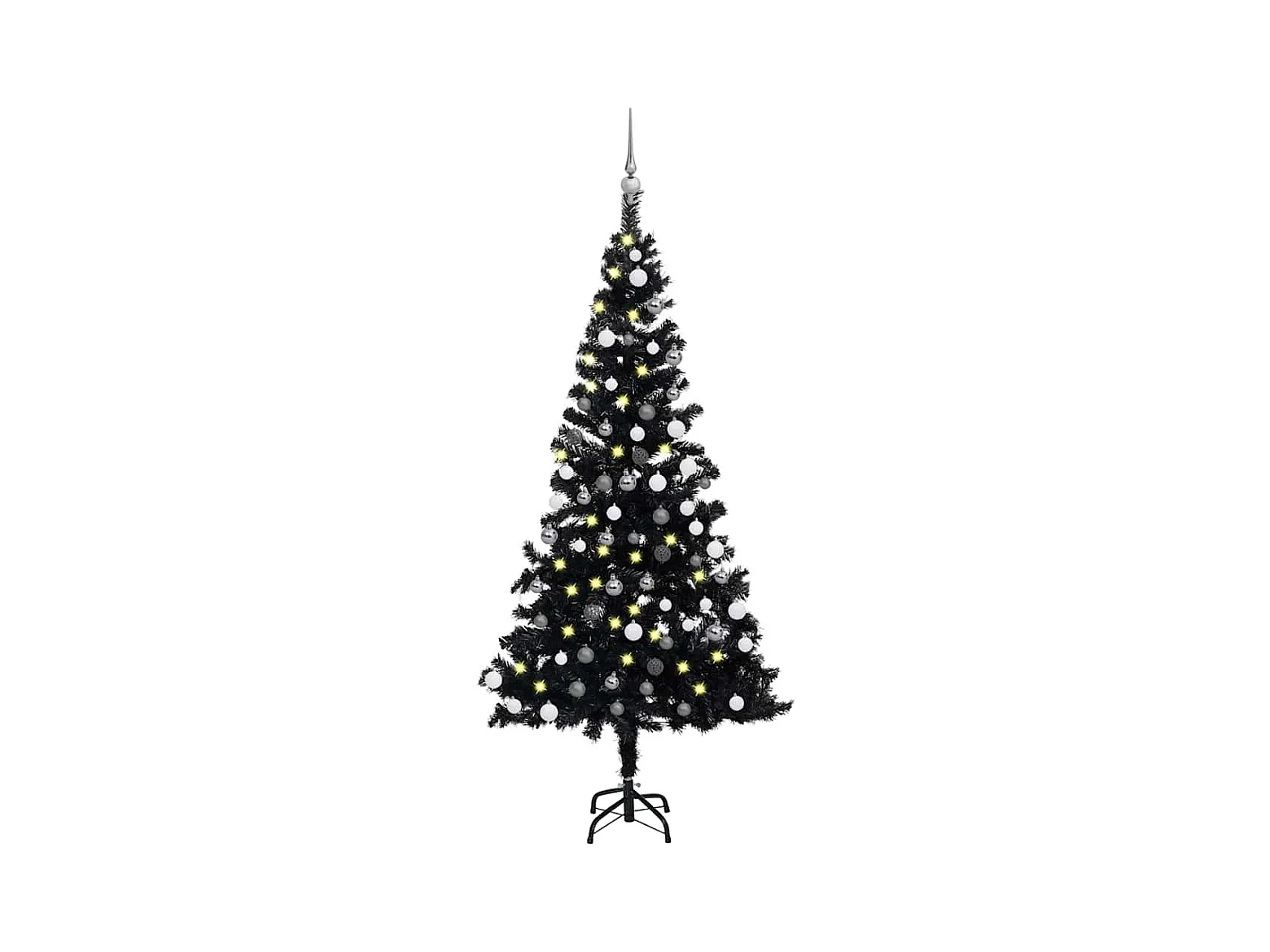 Arbre de Noël artificiel pré-éclairé et boules noir 150 cm PVC