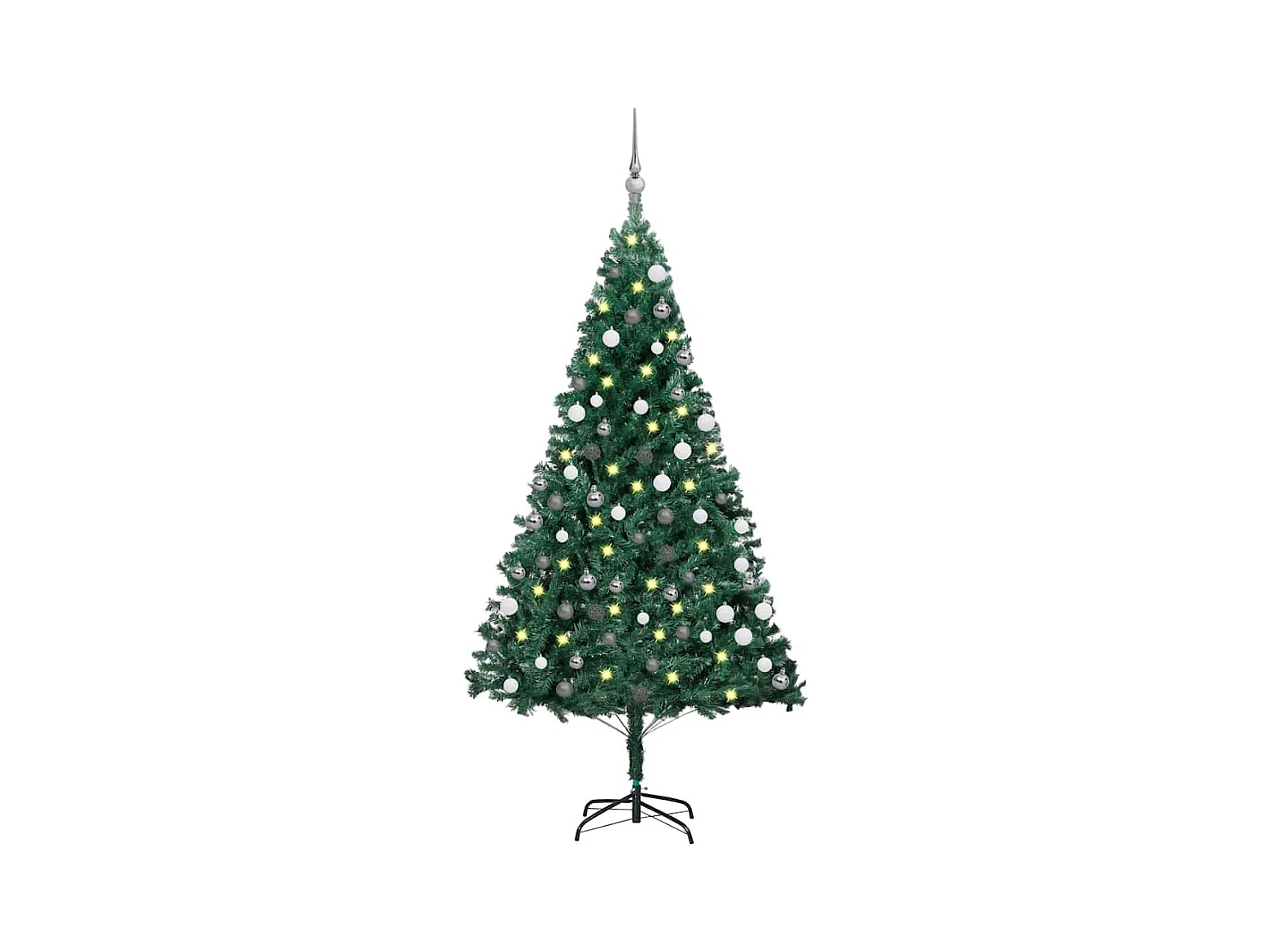 Arbre de Noël artificiel pré-éclairé et boules vert 180 cm PVC
