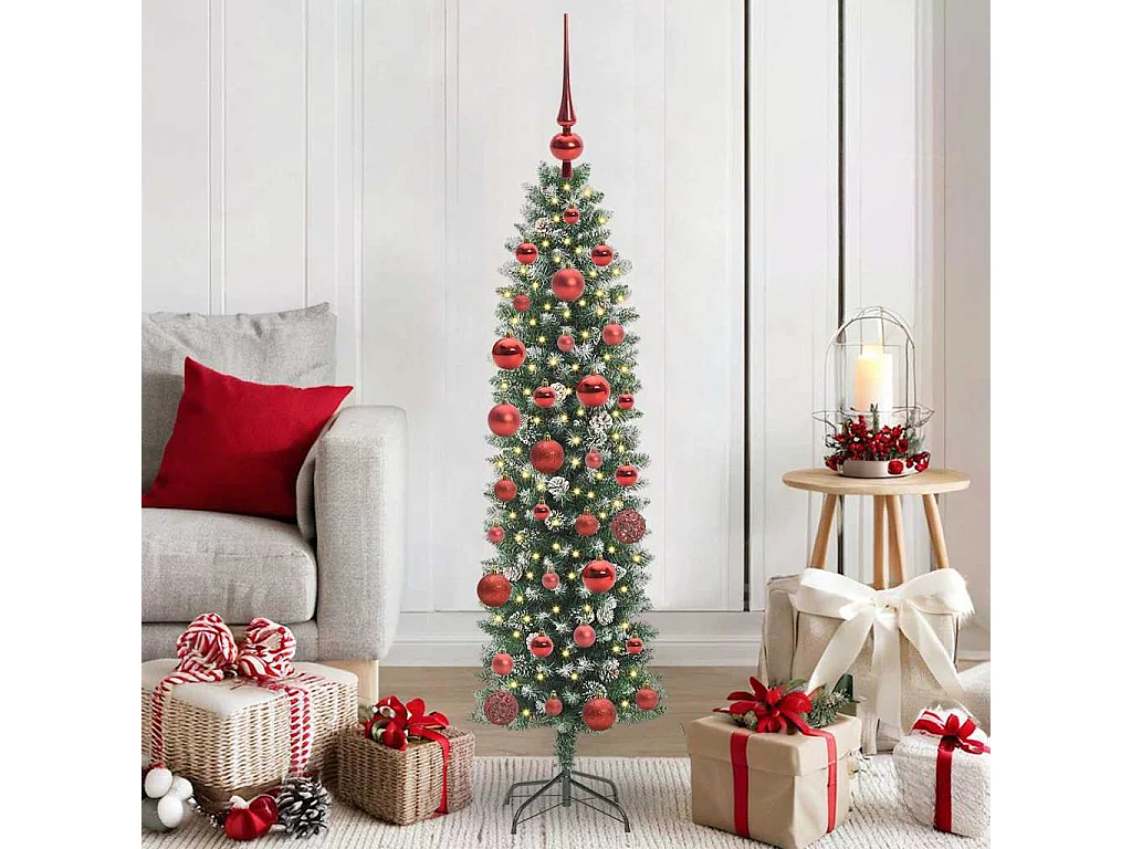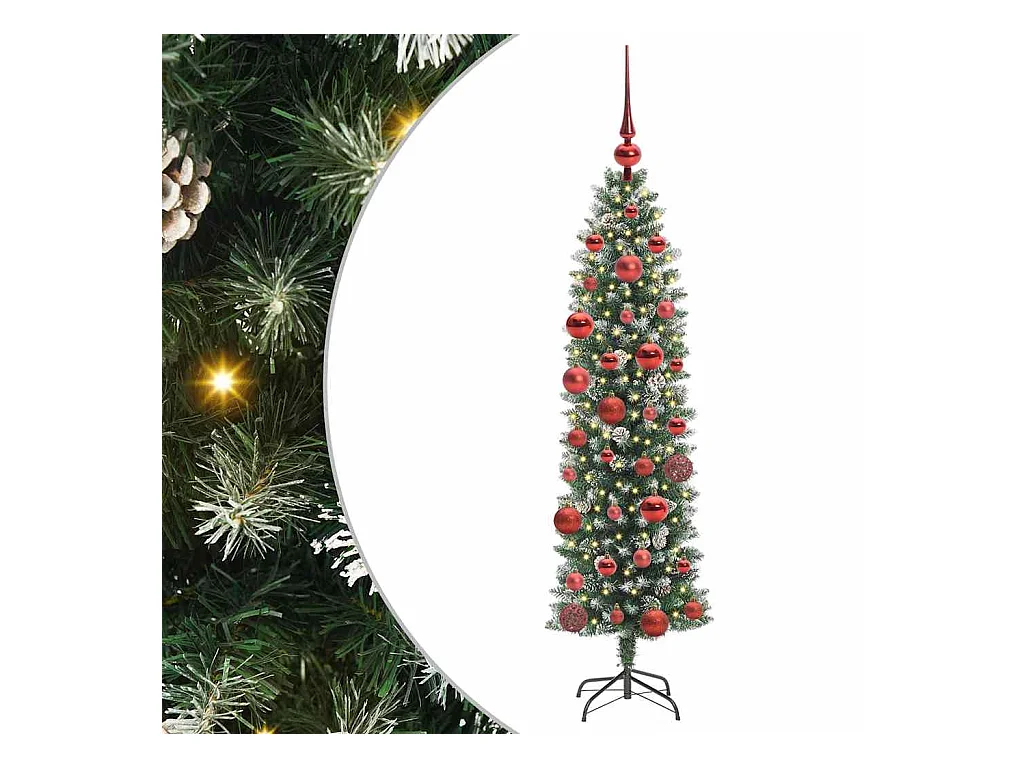 Demi sapin de Noël artificiel mince avec neige floquée 150 cm