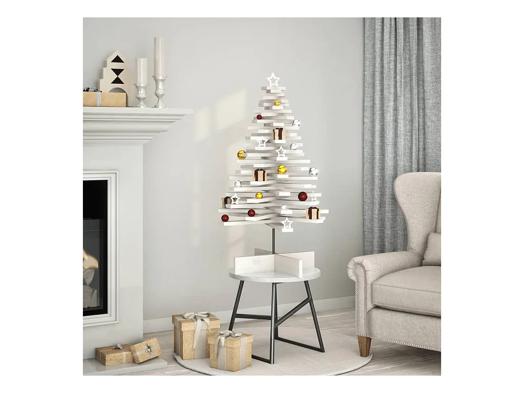 Arbre de Noël en bois pour décoration blanc 120 cm pin massif