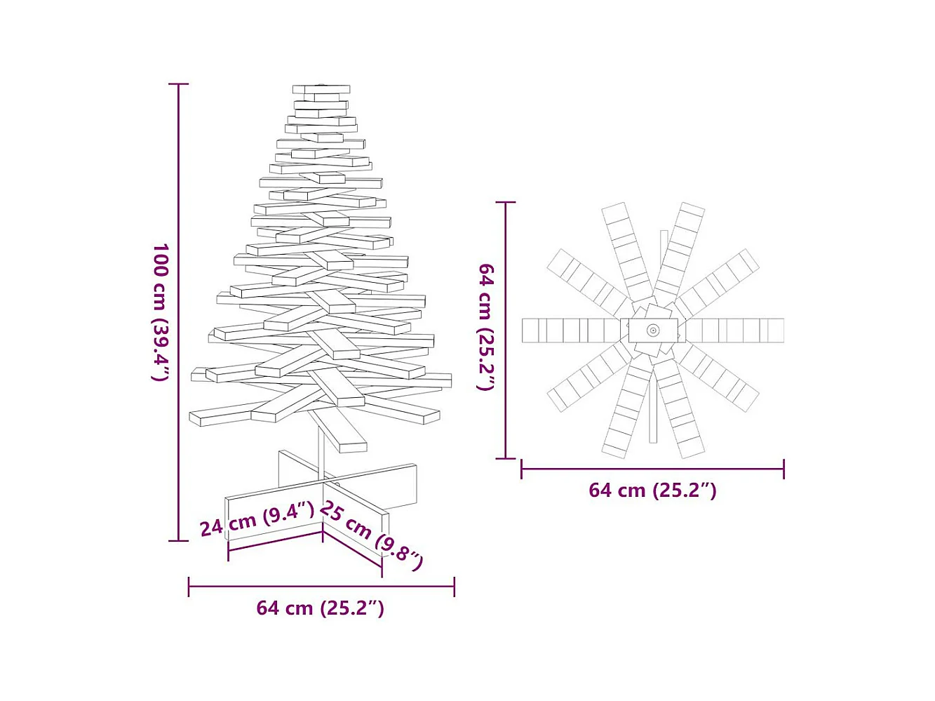 Arbre de Noël en bois pour décoration blanc 69,5 cm pin massif