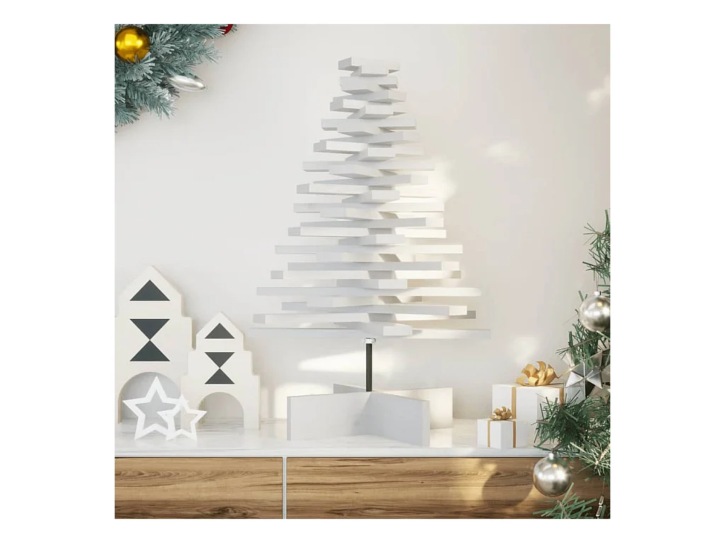 Arbre de Noël en bois pour décoration blanc 69,5 cm pin massif