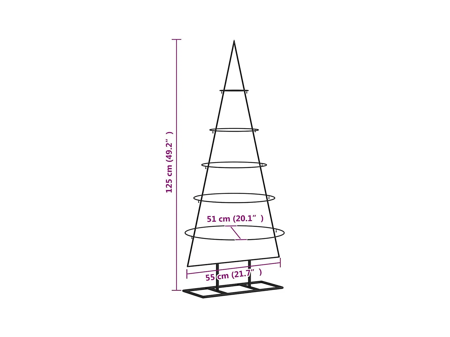 Arbre en cône de Noël avec support Noir 125 cm Acier