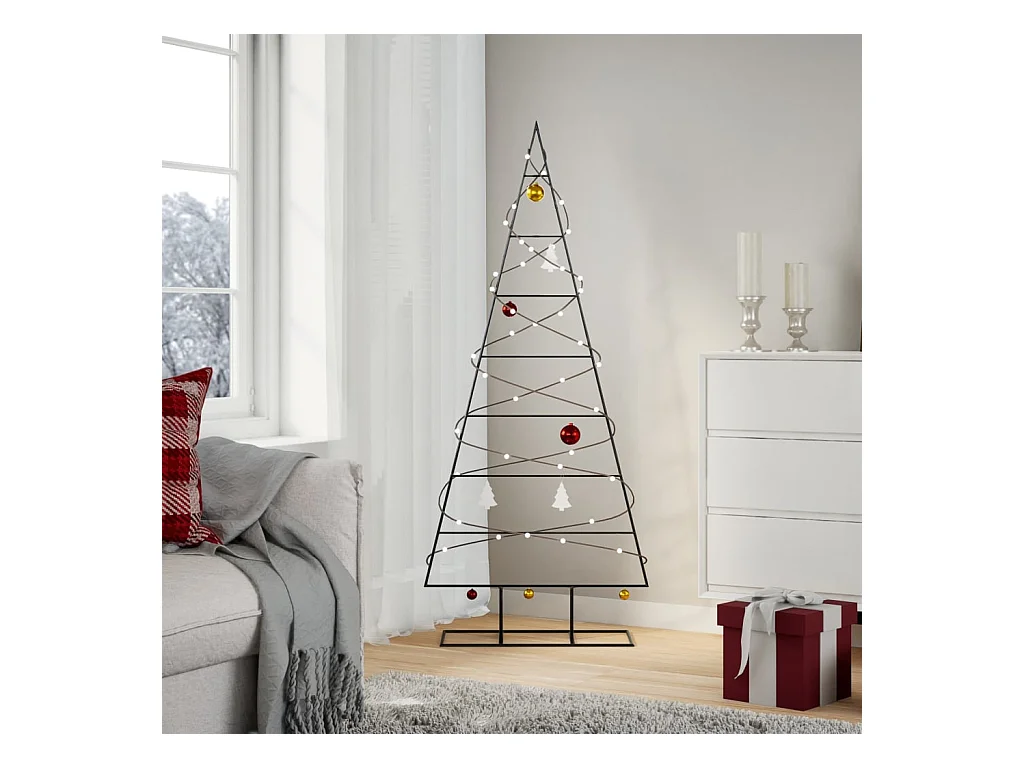 Arbre de Noël en métal avec base en bois noir 150 cm