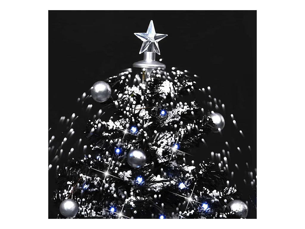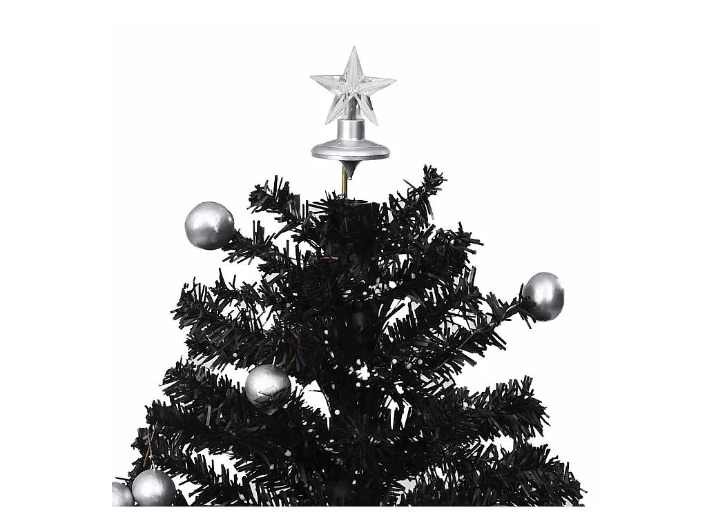 Arbre de Noël artificiel pré-éclairé et boules noir 150 cm PVC