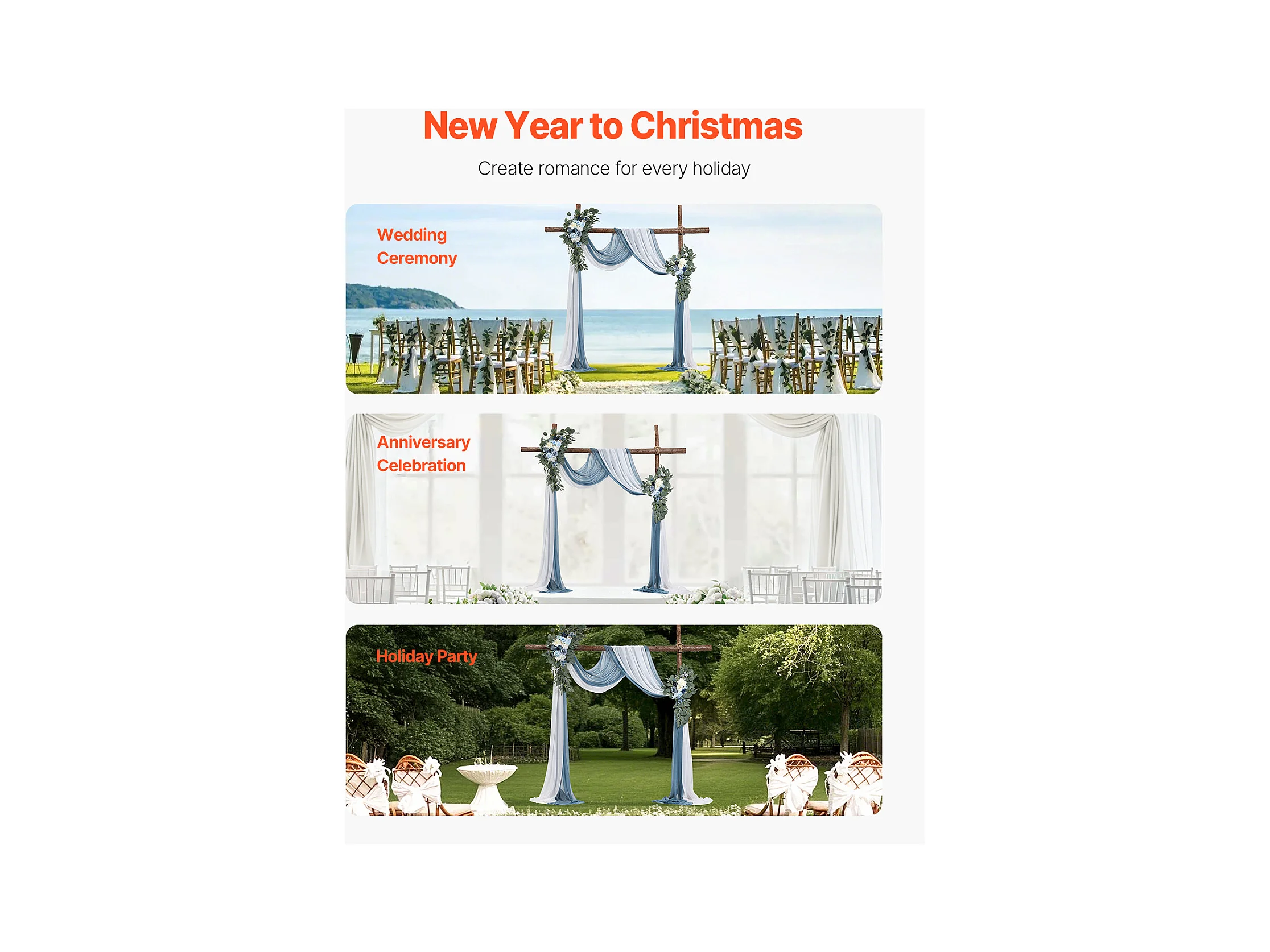 Arche de Mariage SucceBuy Kit de Fleurs Artificielles pour Arche de Mariage - Orange, 2 Fleurs et 3 Rideaux