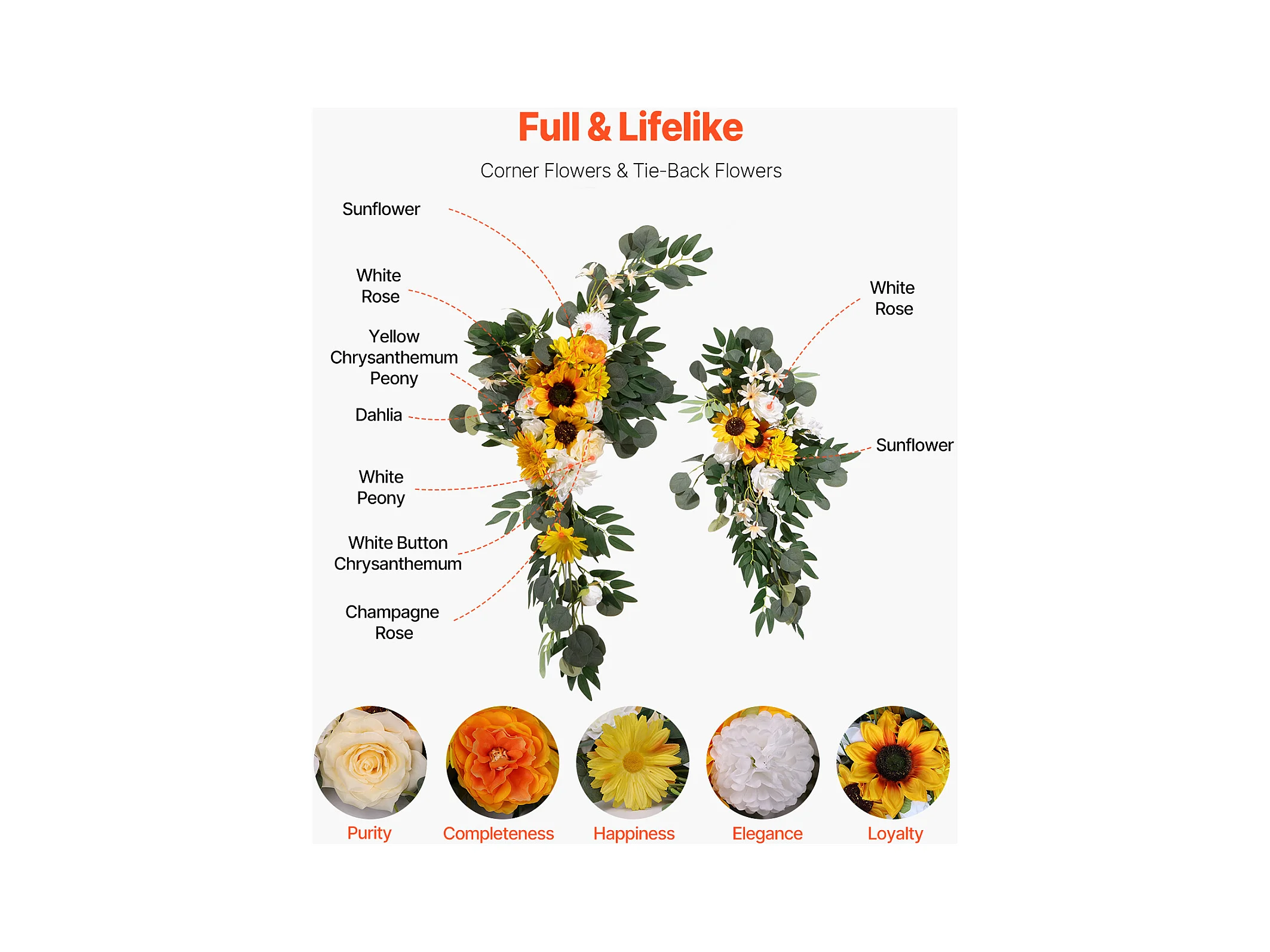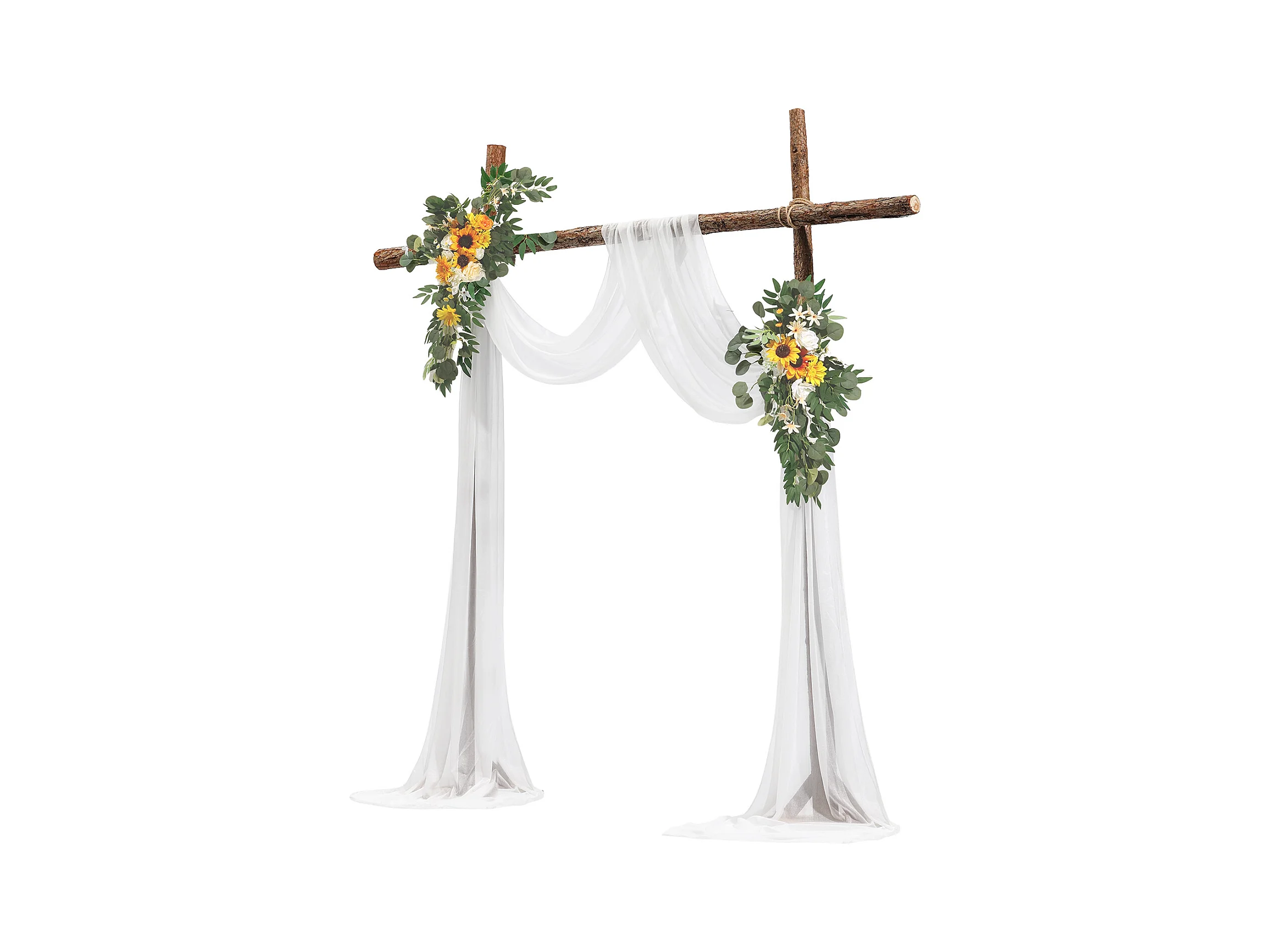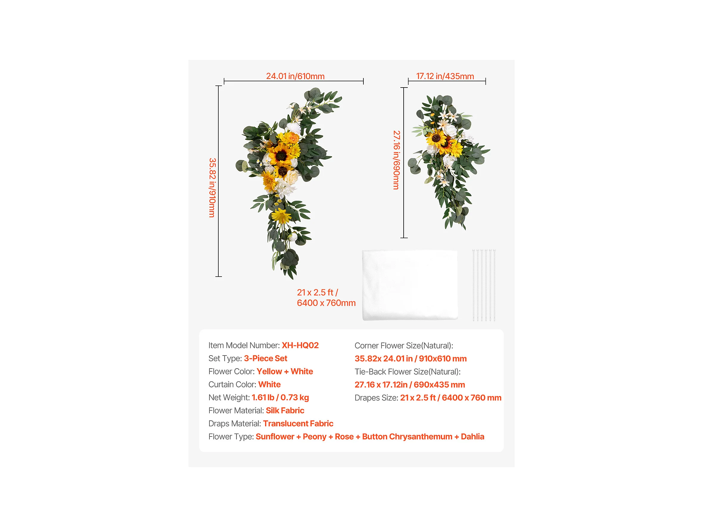 Arche de Mariage SucceBuy Kit de Fleurs Artificielles pour Arche de Mariage - Jaune, 2 Fleurs et 1 Rideau