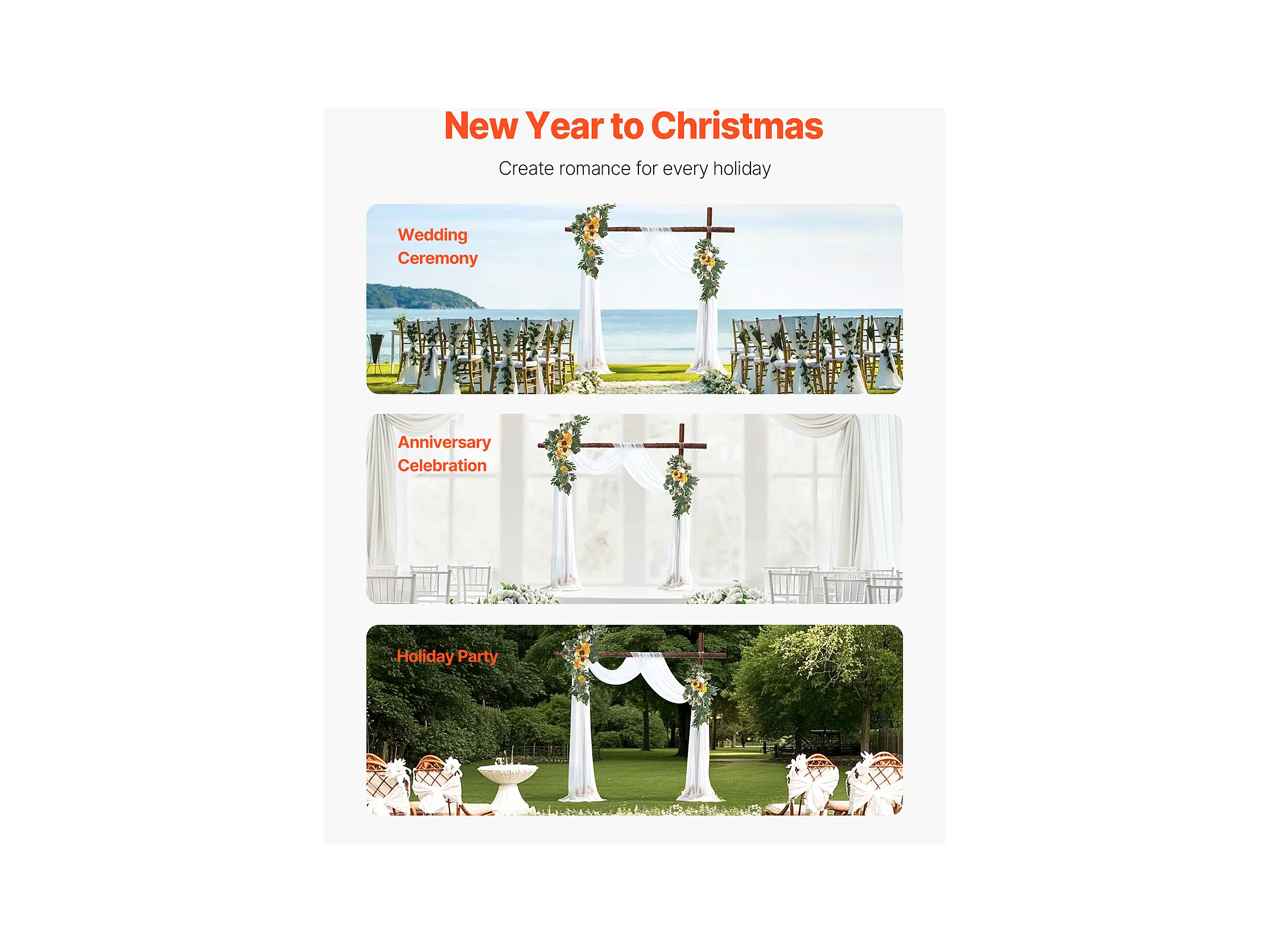 Arche de Mariage SucceBuy Kit de Fleurs Artificielles pour Arche de Mariage - Orange, 2 Fleurs et 3 Rideaux