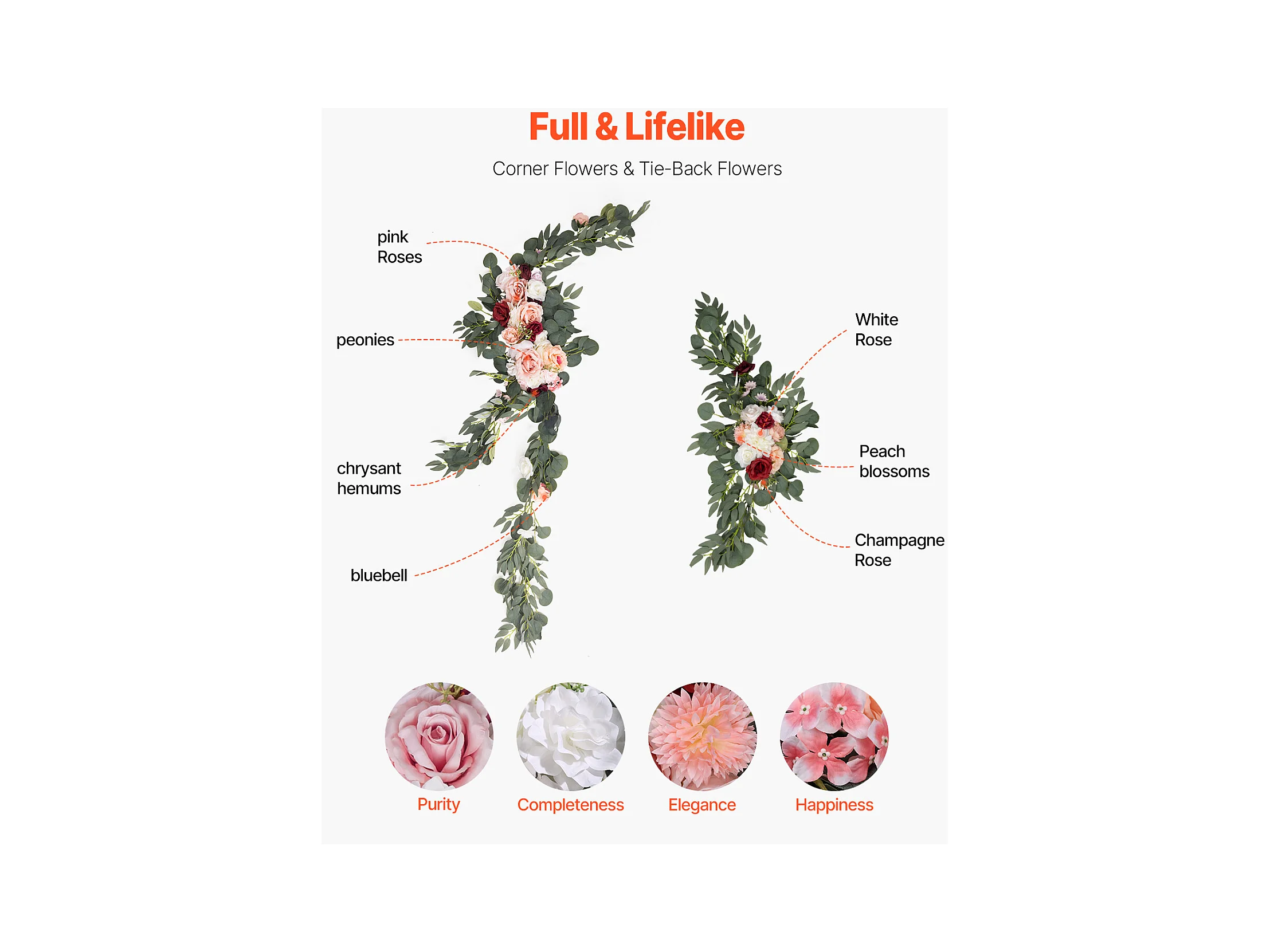 Arche de Mariage SucceBuy Kit de Fleurs Artificielles pour Arche de Mariage - Rose, 2 Fleurs et 2 Rideaux