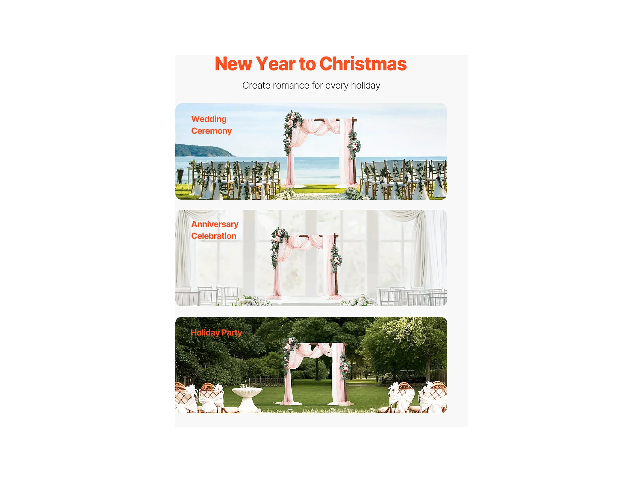 Arche de Mariage SucceBuy Kit de Fleurs Artificielles pour Arche de Mariage - Orange, 2 Fleurs et 3 Rideaux