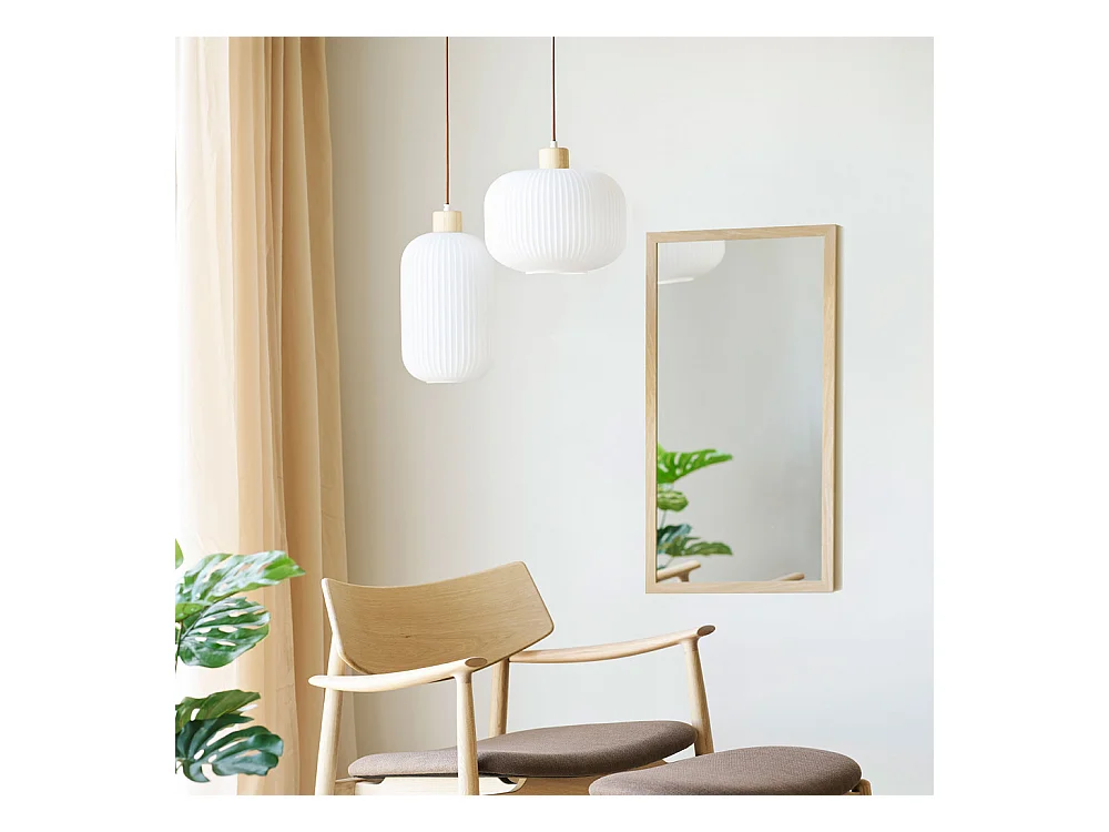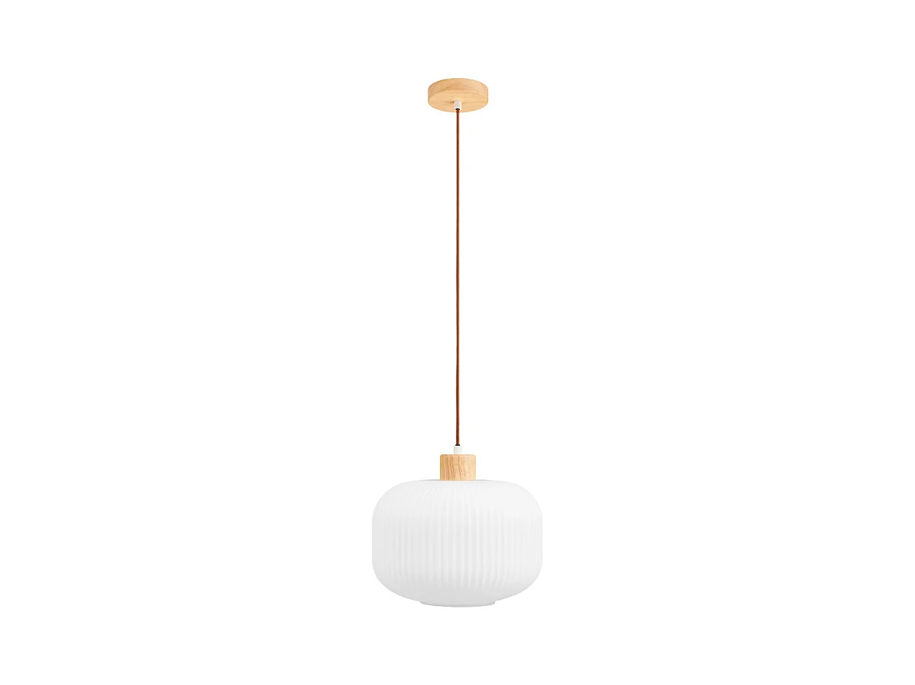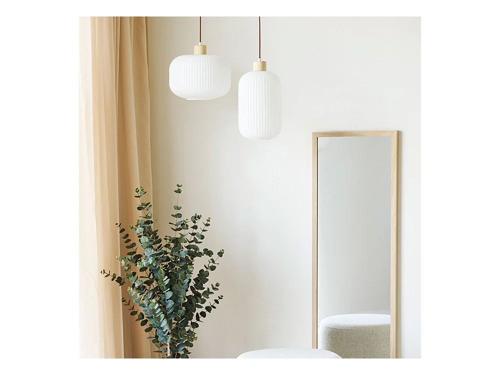Argalo - Suspension ronde en verre et bois ø30cm - Blanc