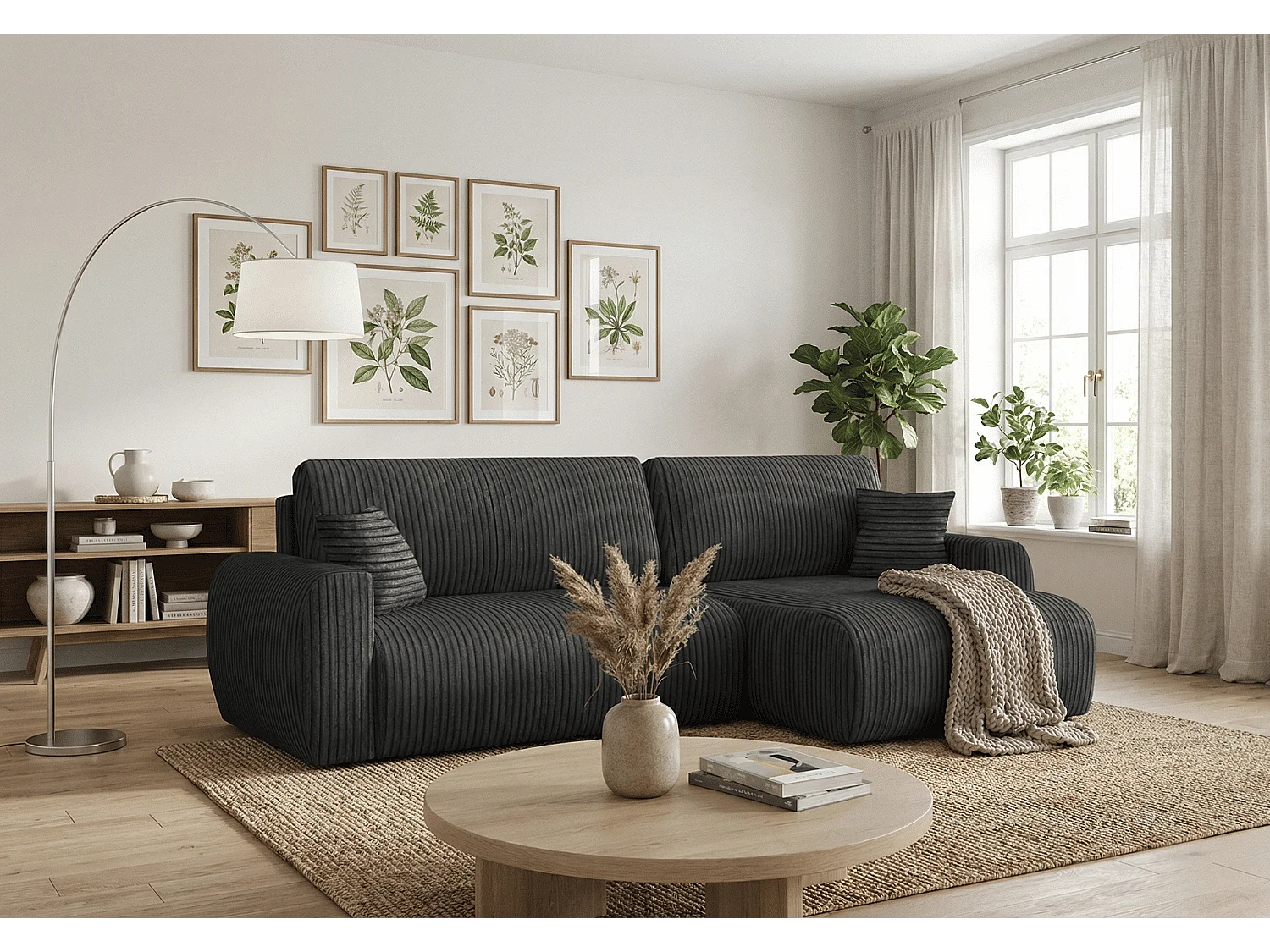 ARIEL L – Canapé d’angle droit convertible 250x142x87 cm, tissu Velo 19 noir