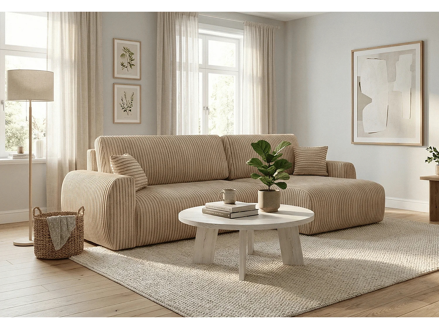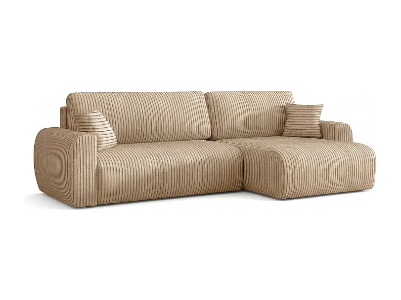 ARIEL L – Canapé d’angle droit convertible 250x142x87 cm, tissu Velo 22 crème