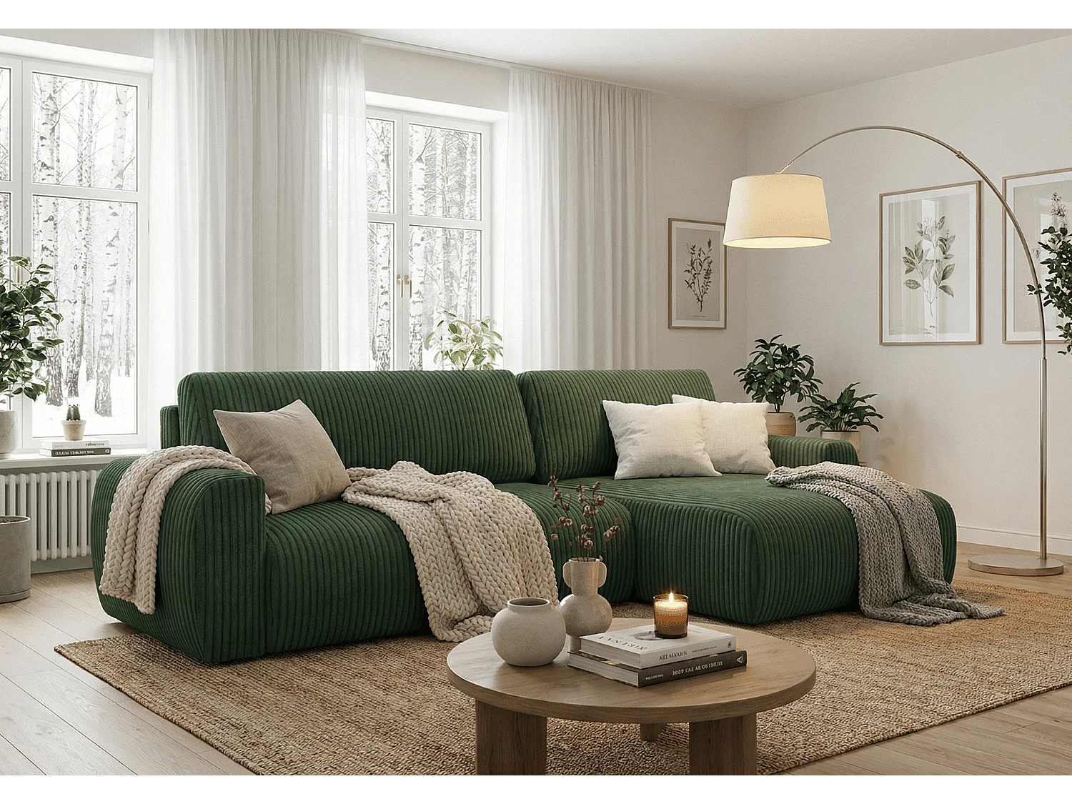 ARIEL L – Canapé d’angle droit convertible 250x142x87 cm, tissu Velo 79 vert bouteille
