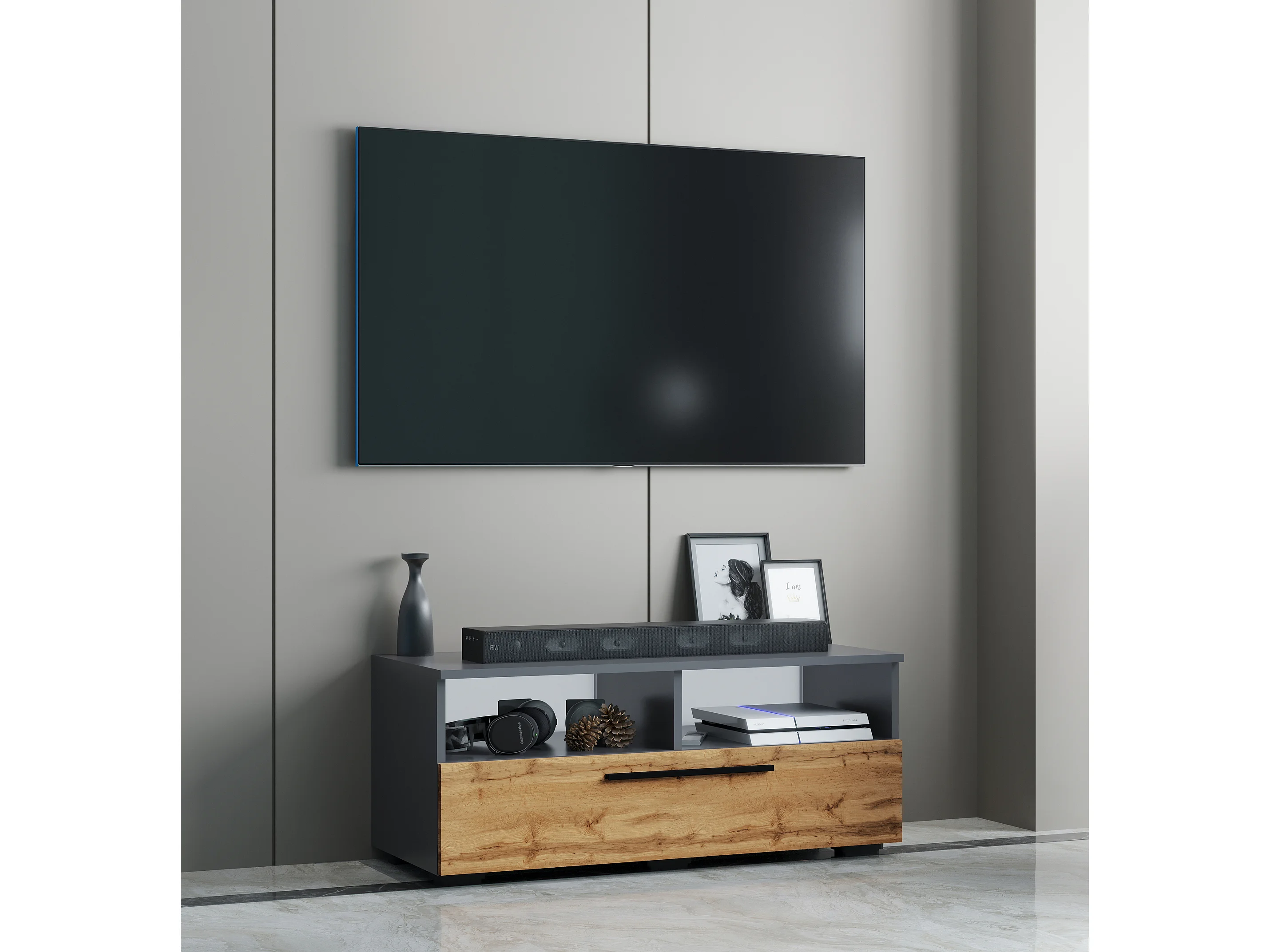 TV Furniture Arila Anthracite / honey oak H. 39 x W. 95 x D. 40 cm