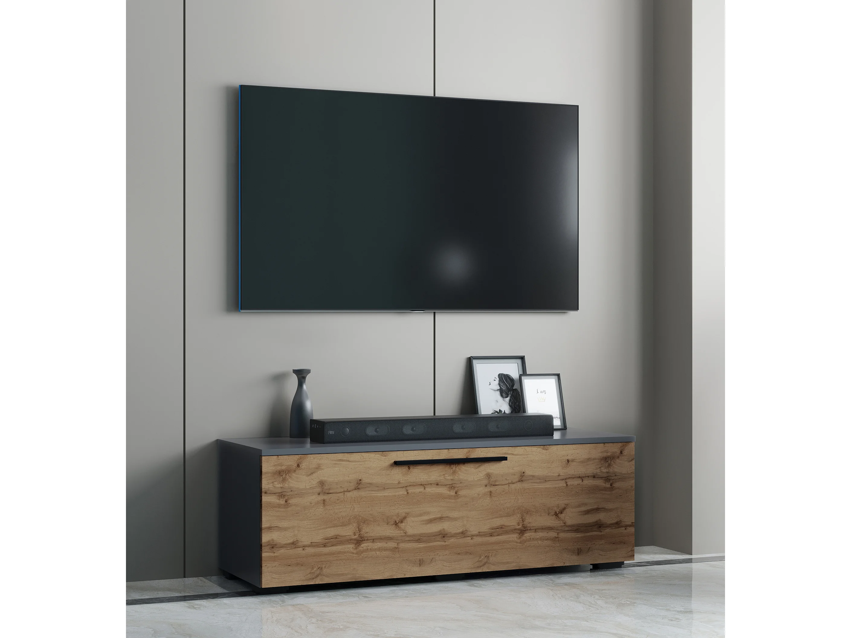 TV Furniture Arila Anthracite / honey oak H. 39 x W. 115 x D. 40 cm