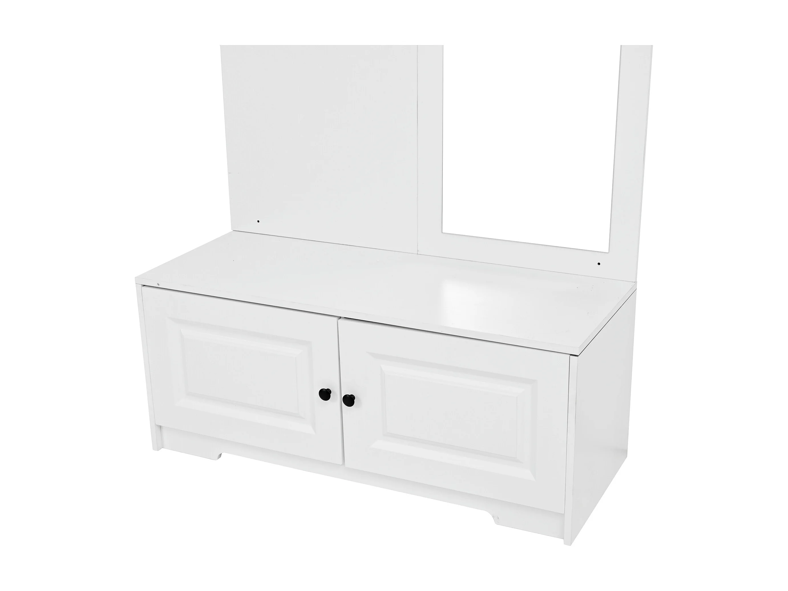 Ensemble vestiaire d'entrée 100x40x180cm - avec miroir et 5 patères - 2 portes - avec meuble à chaussures et étagères - Blanc