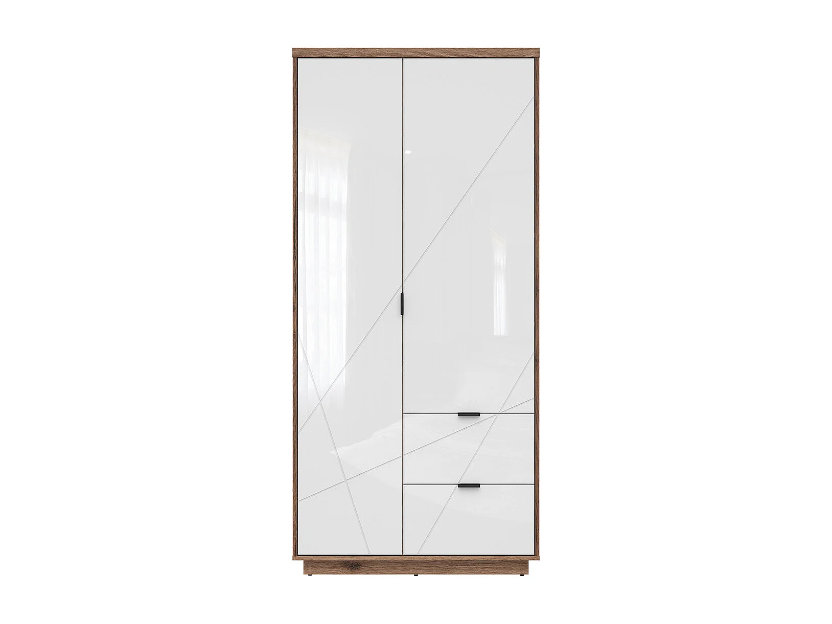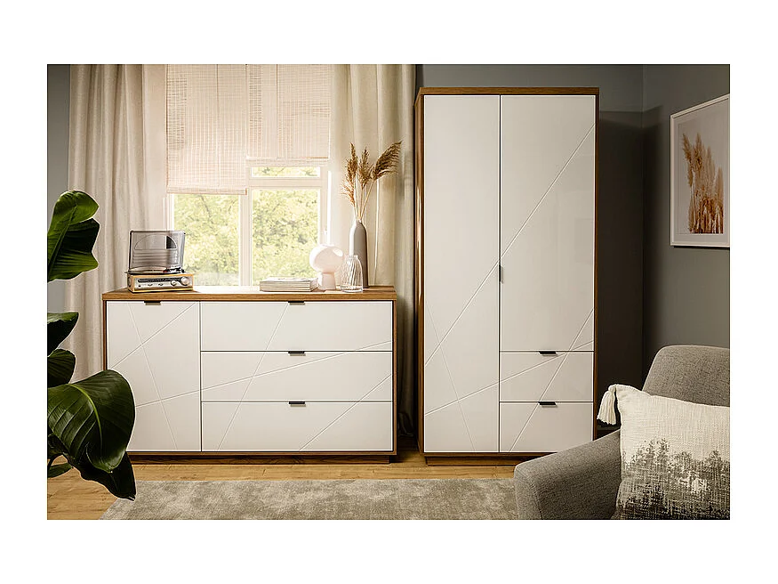 Armoire 2 portes 2 tiroirs Sven Blanc et Bois