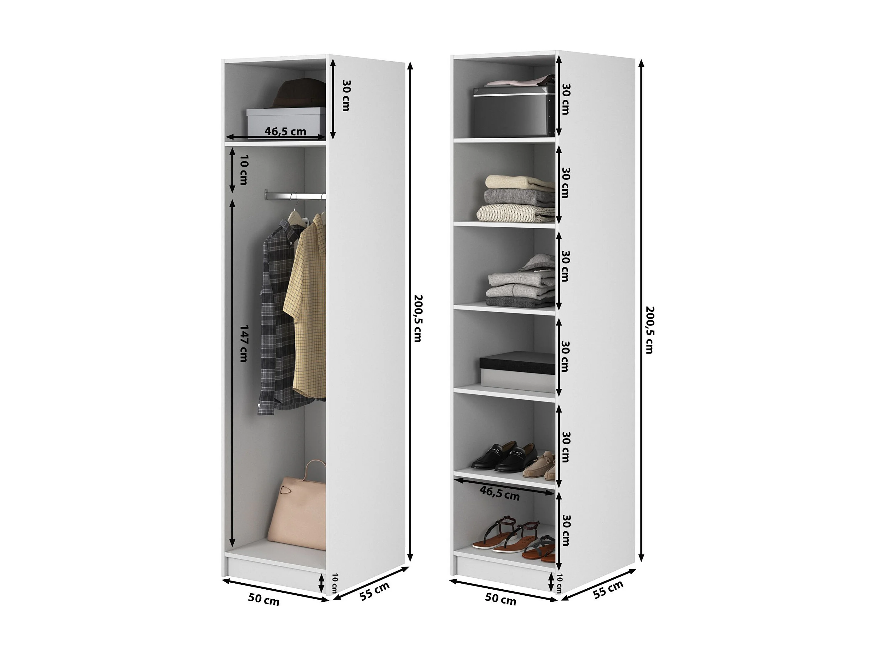 Armoire 2 portes avec tringle et étagères - 100 cm - grège - FRAME