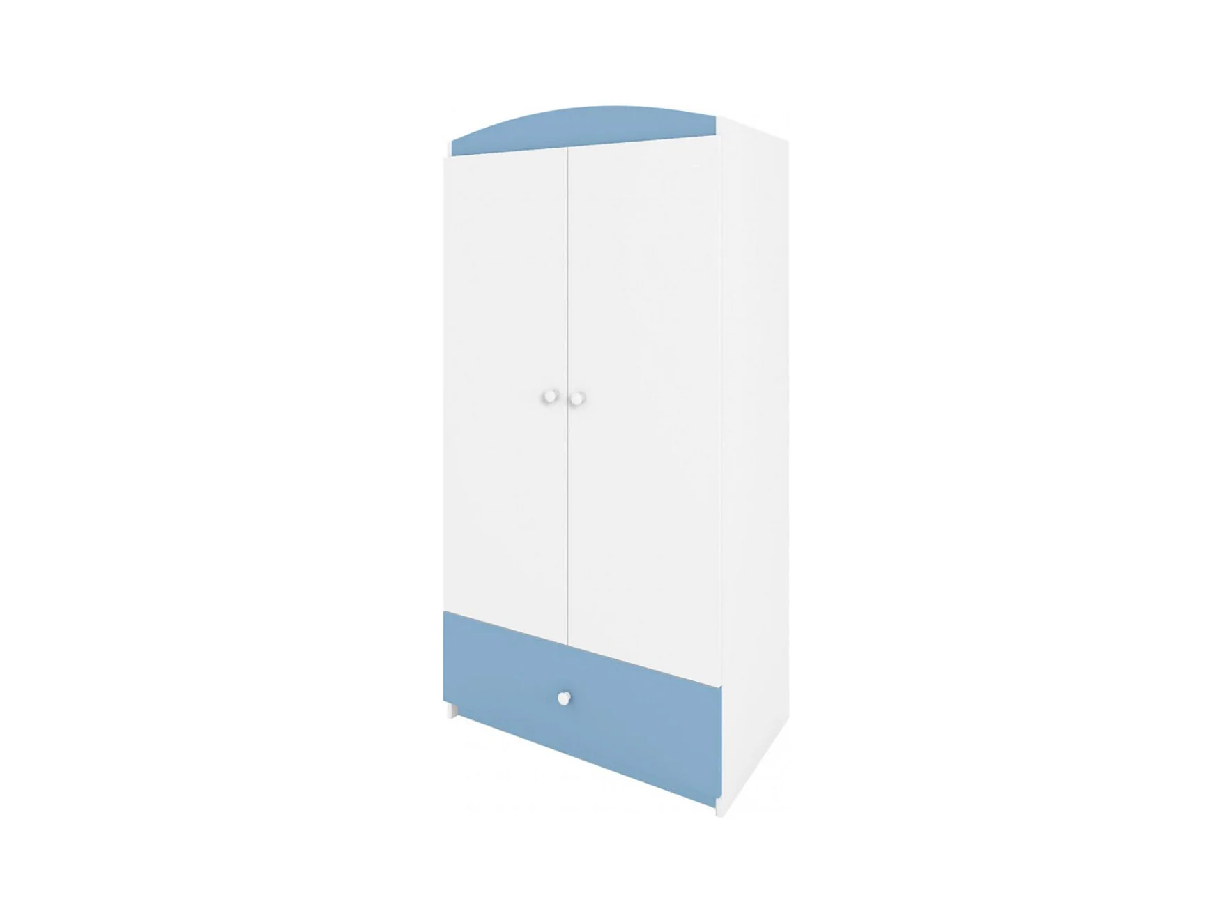 Armoire enfant 89.6x44x180.5 cm - 2 tiroirs et 2 portes - 1 tringle à vêtements - structure en pin - bleu+naturel