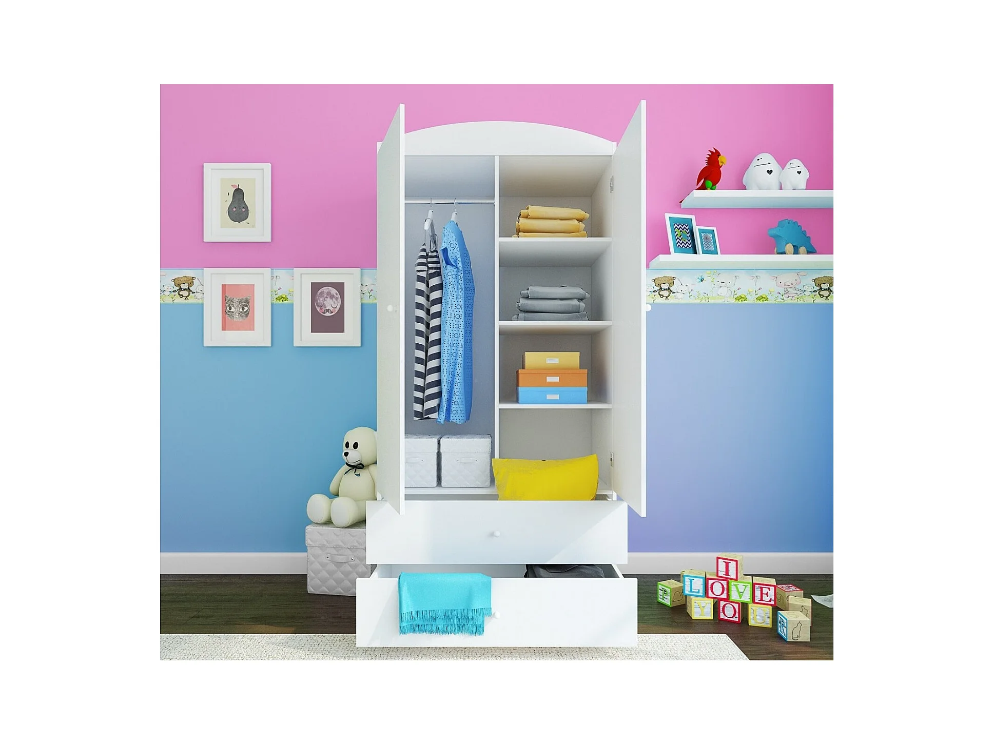 Armoire 2 portes enfant ourson et fleurs Drimy