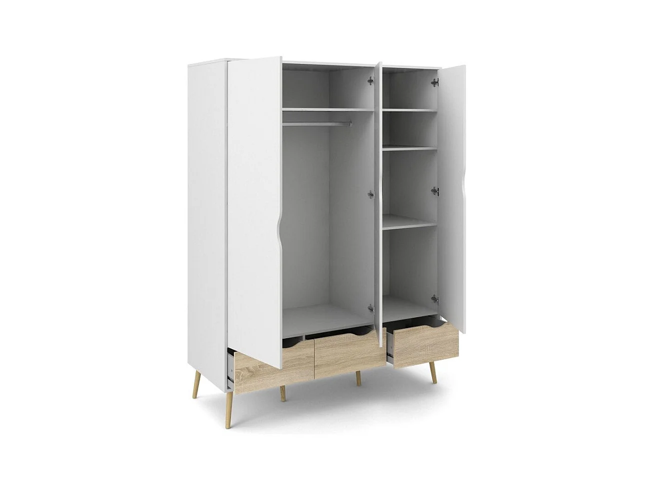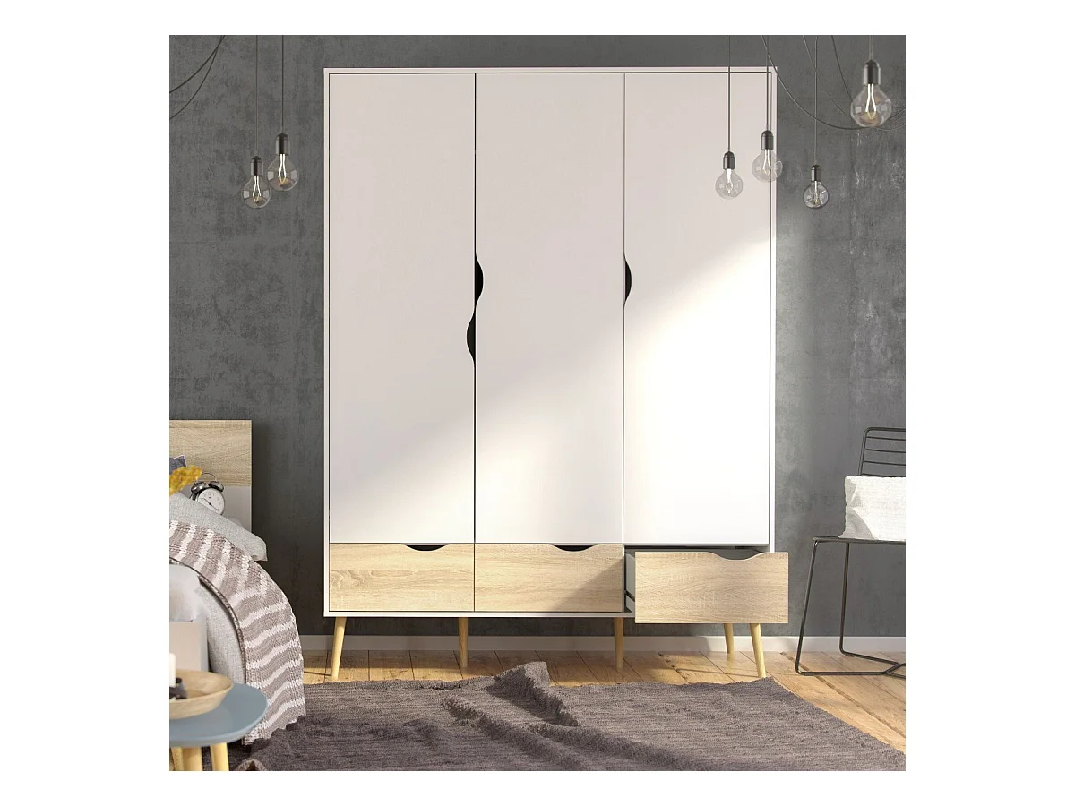 Armoire 3 portes, 3 tiroirs blanc et décor chêne L147,2 cm - BILLUND