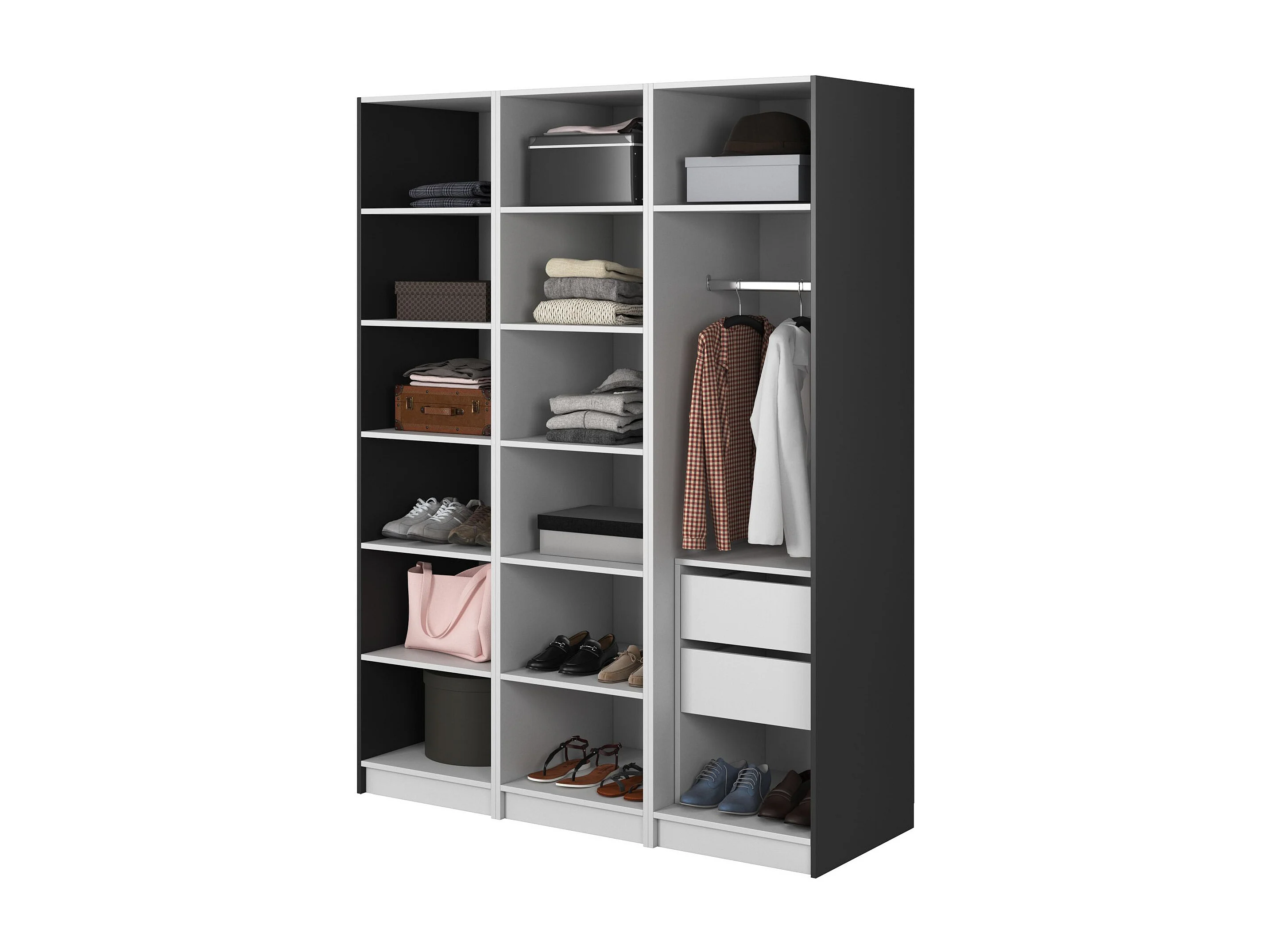 Armoire 3 portes avec tringle et étagères - 150 cm - noir- FRAME