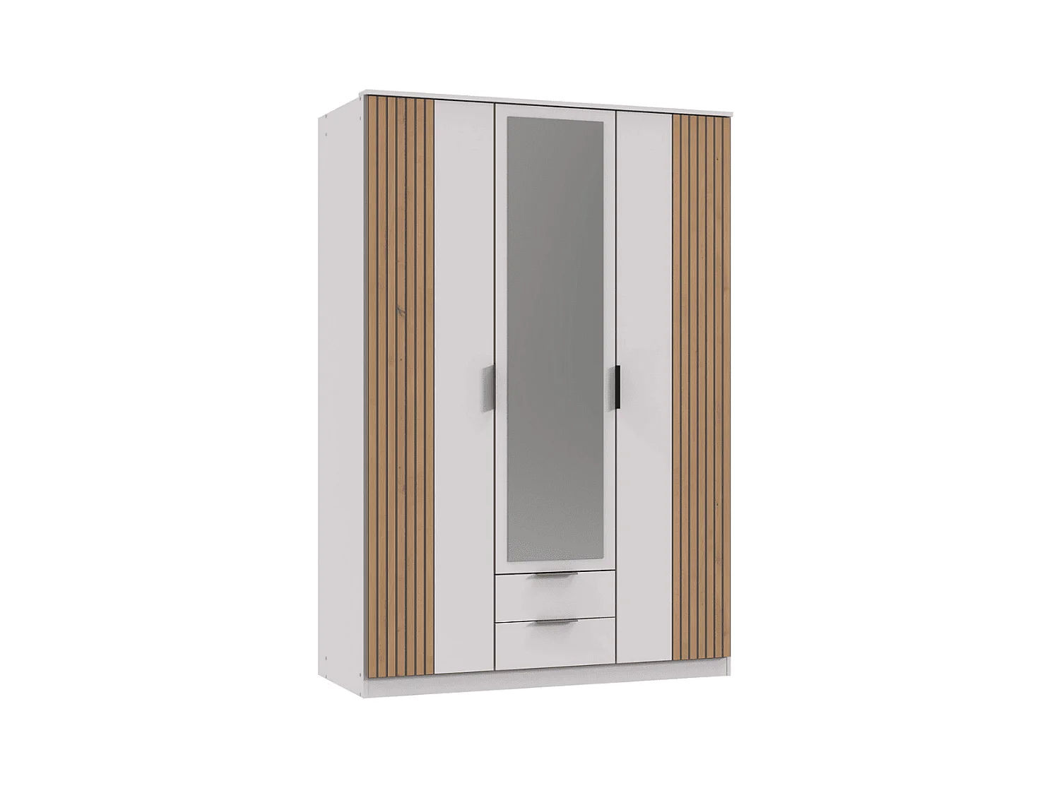 Armoire 3 portes battantes avec 1 miroir et 2 tiroirs L135 cm - LUEBECK