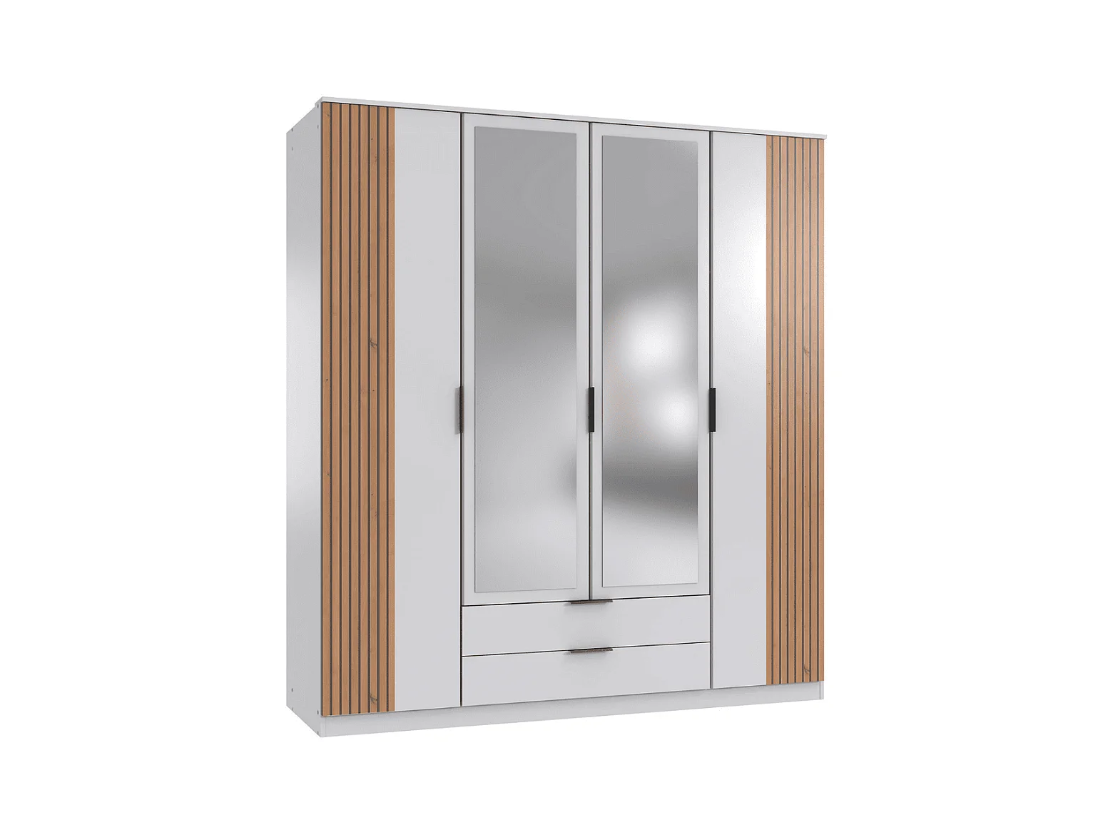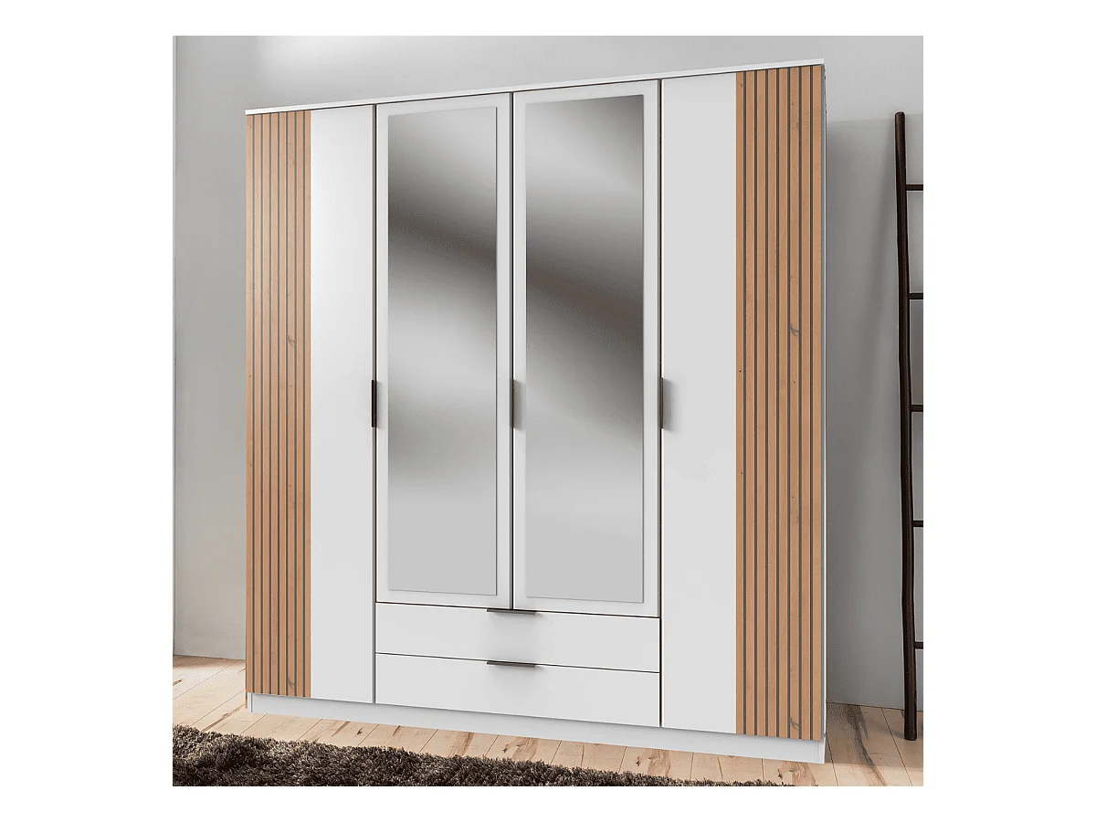 Armoire 4 portes battantes avec 2 miroirs et 2 tiroirs L180 cm - SOEST